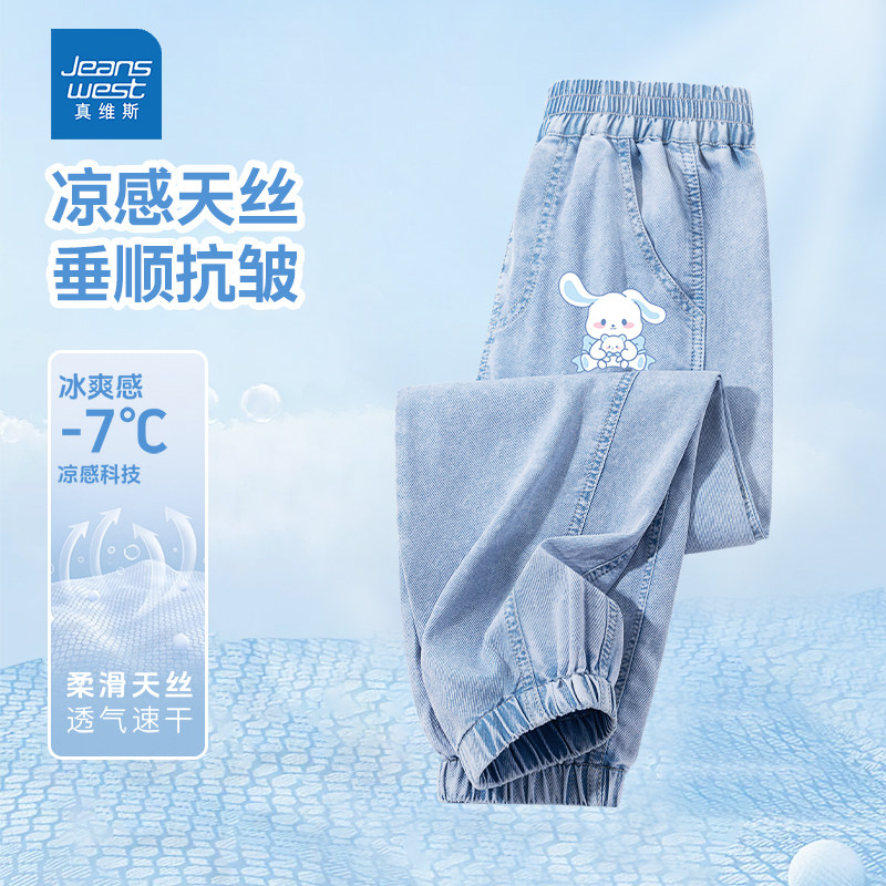 真维斯童装女童裤子夏季薄款2025新款女大童牛仔裤天丝儿童防蚊裤