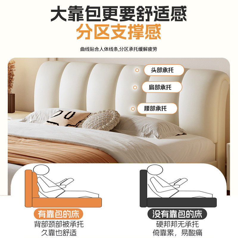 法式奶油风软包床猫抓皮主卧1.8m双人床极简泡芙床全实木真皮床