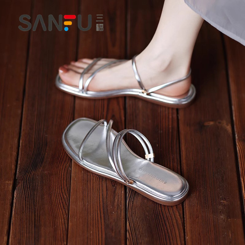 三福真皮两穿不累脚凉鞋女夏季2025新款外穿时尚配裙子平底凉拖鞋