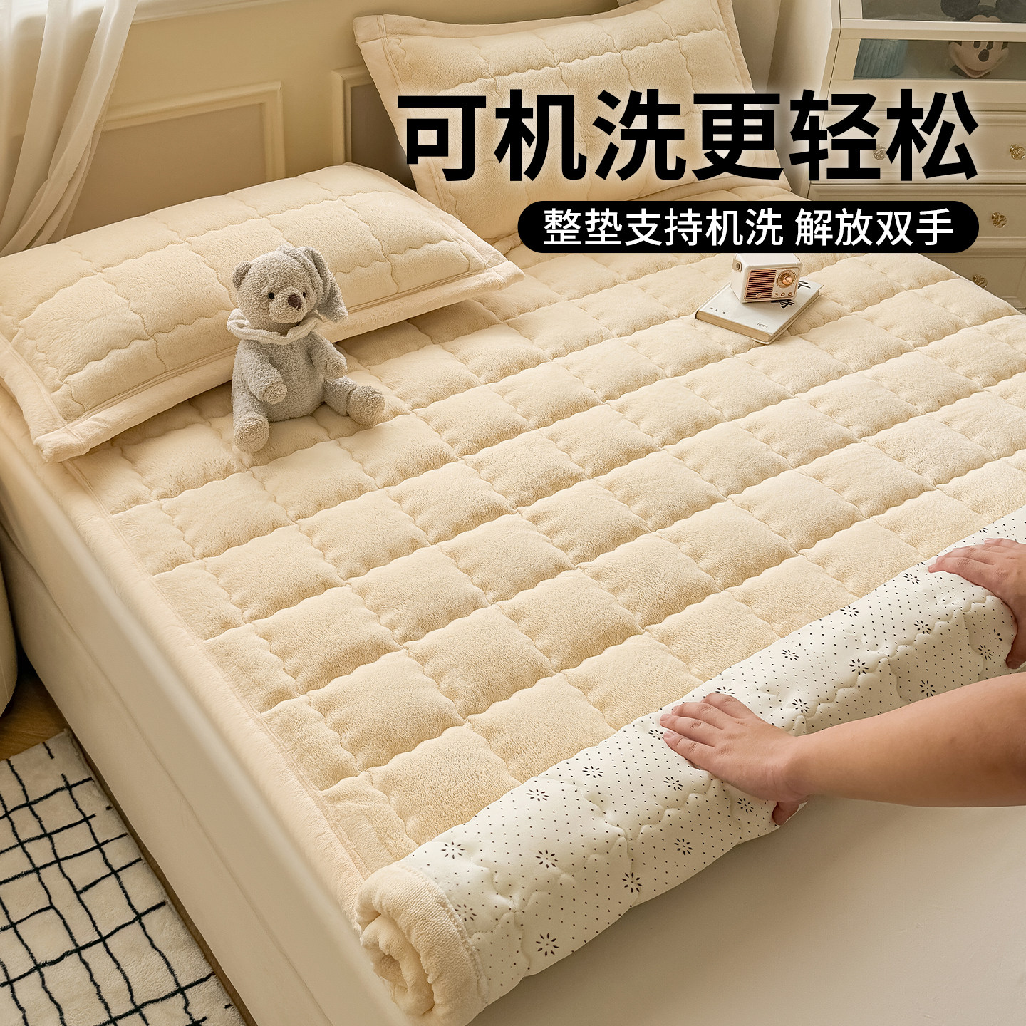 牛奶绒床垫褥子软垫家用加厚宿舍学生单人铺垫被冬季加绒毛毯床褥
