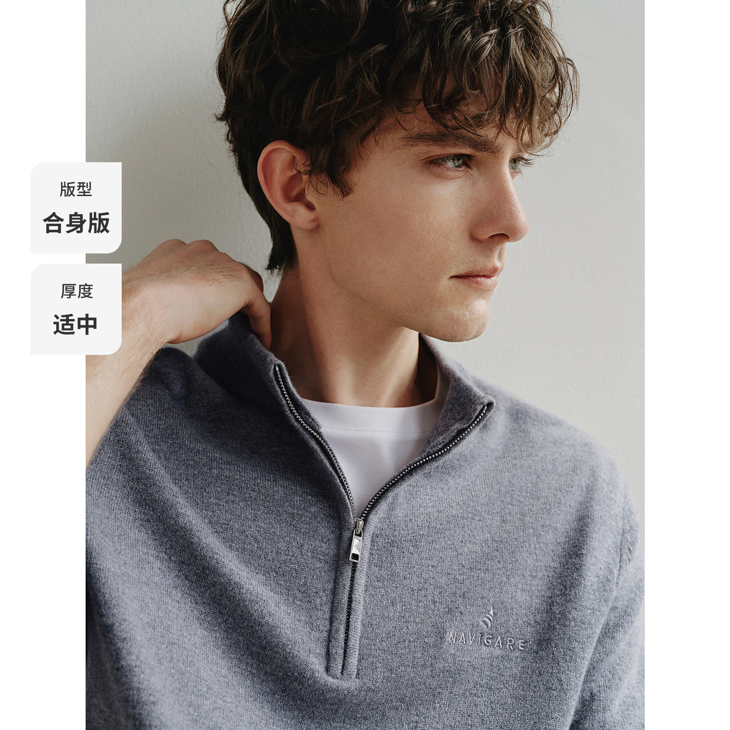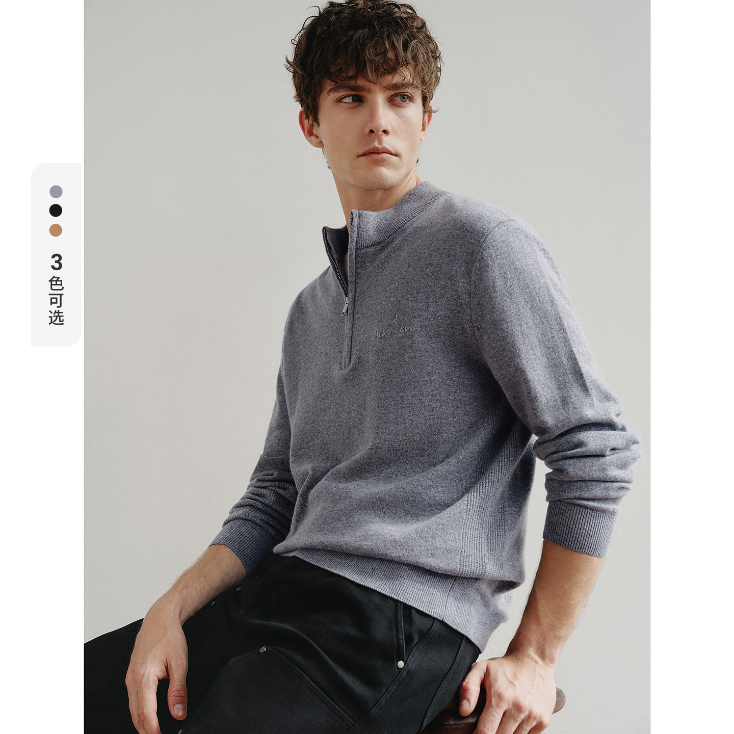 Navigare意大利小帆船老钱风羊绒针织衫男25秋季新款半开领羊毛衫