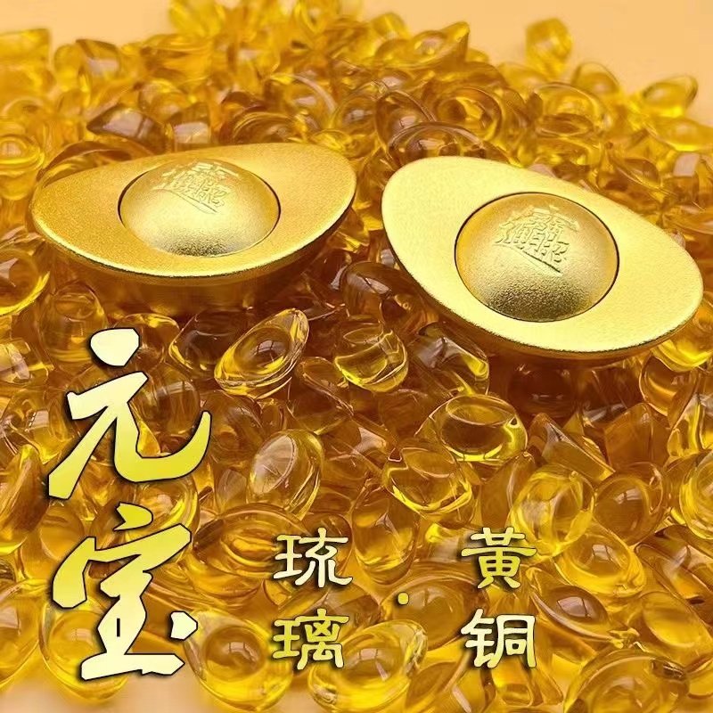 黄水晶元宝摆件小元宝琉璃金元宝招财聚宝盆百福米缸乔迁礼品客厅