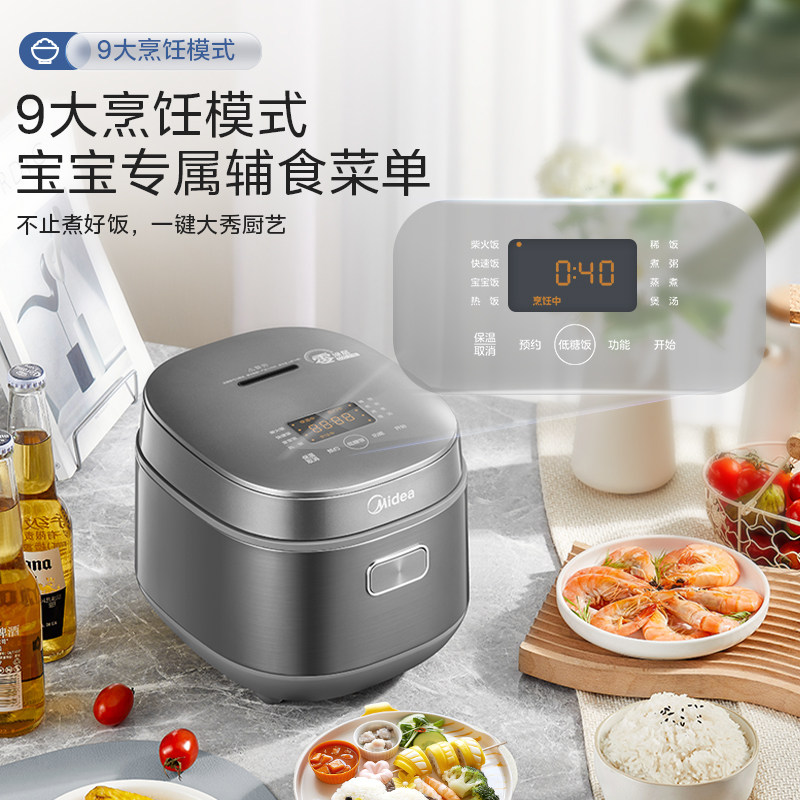 美的无涂层电饭煲4L家用0涂层IH电饭锅316不锈钢内胆正品官方旗舰