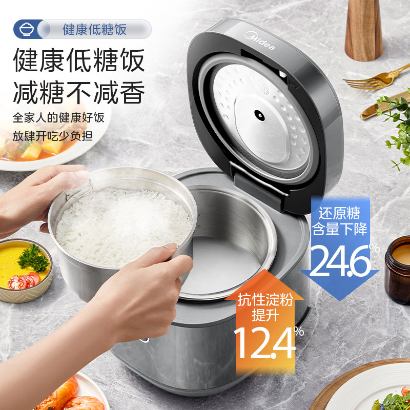美的低糖电饭煲0涂层米汤分离2-3人小型家用316L不锈钢低糖煮饭锅