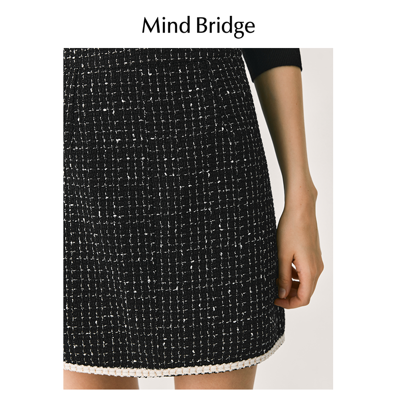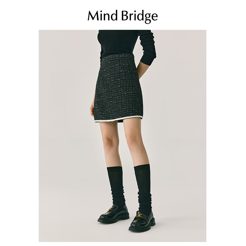 MB MindBridge2026年春季赫本风黑色小香风短裙女法式优雅半身裙
