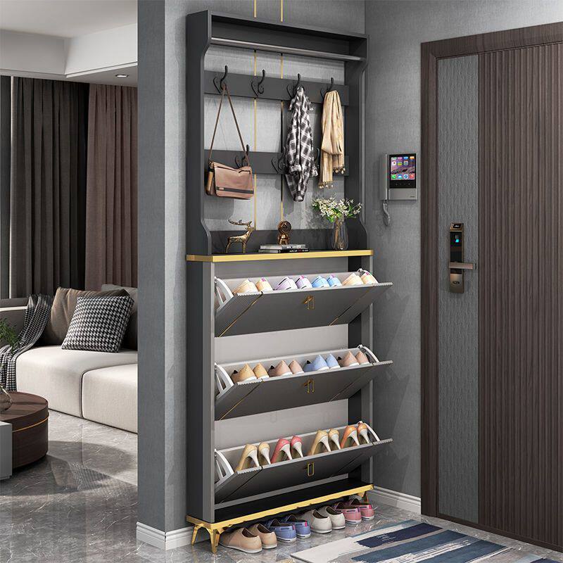b轻奢鞋柜门口进门靠墙挂衣架鞋柜一体多功能多层玄关柜家用收纳