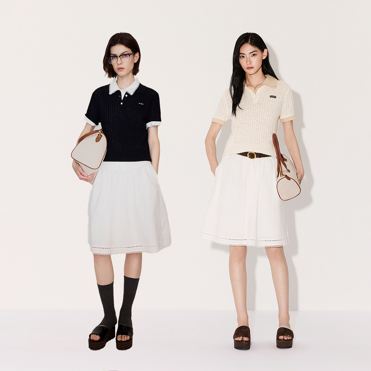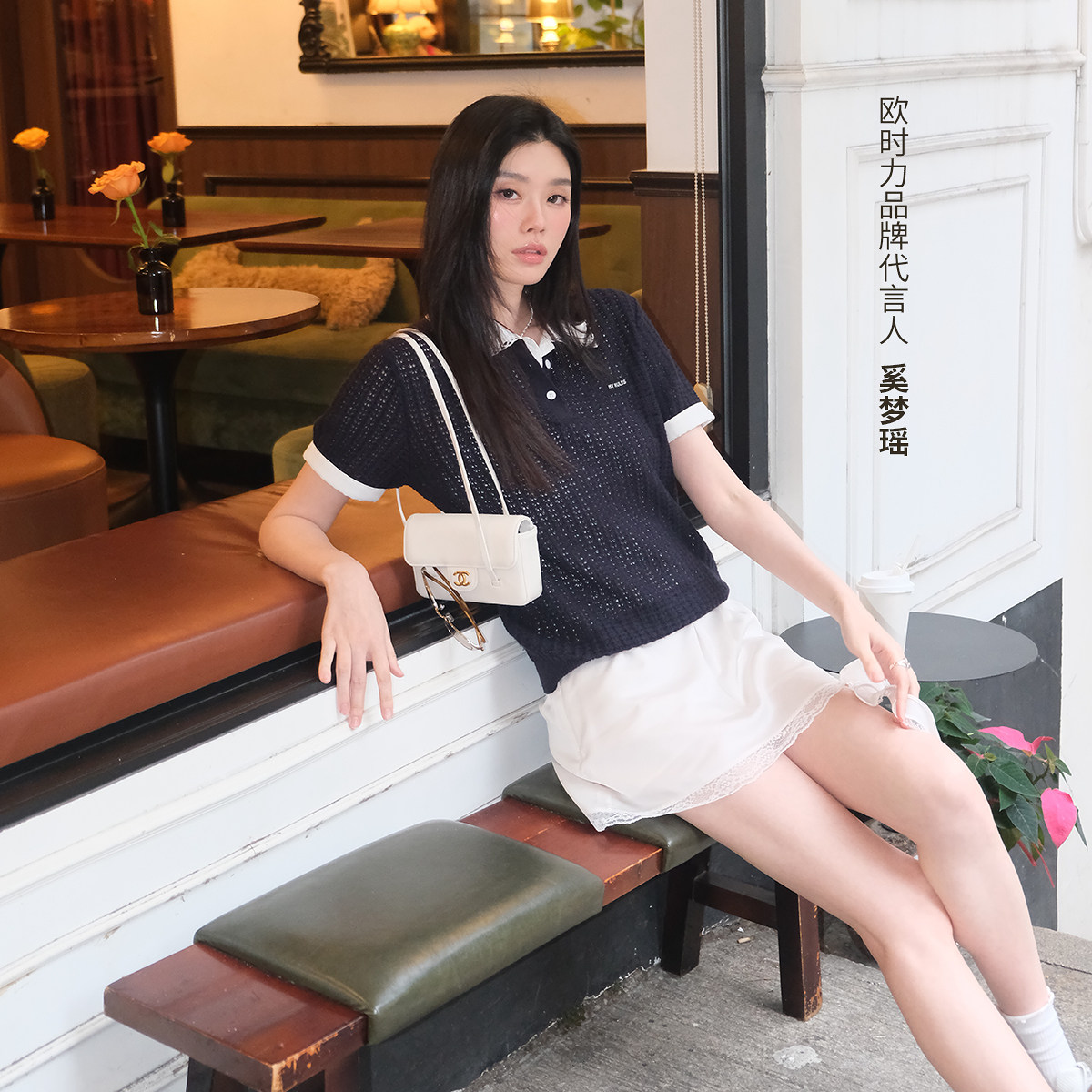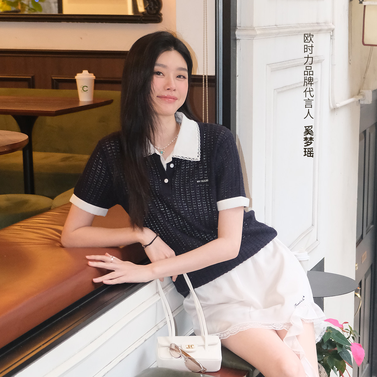 【新品】奚梦瑶同款欧时力针织衫26春夏棉麻假两件可拆领防晒短袖