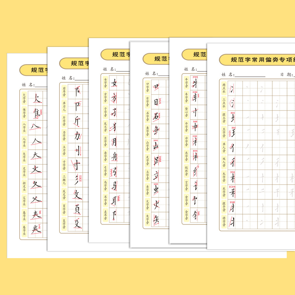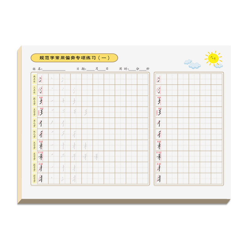 热门楷书写字偏旁笔顺描红小学生常用专项训练习字帖硬笔楷书练字