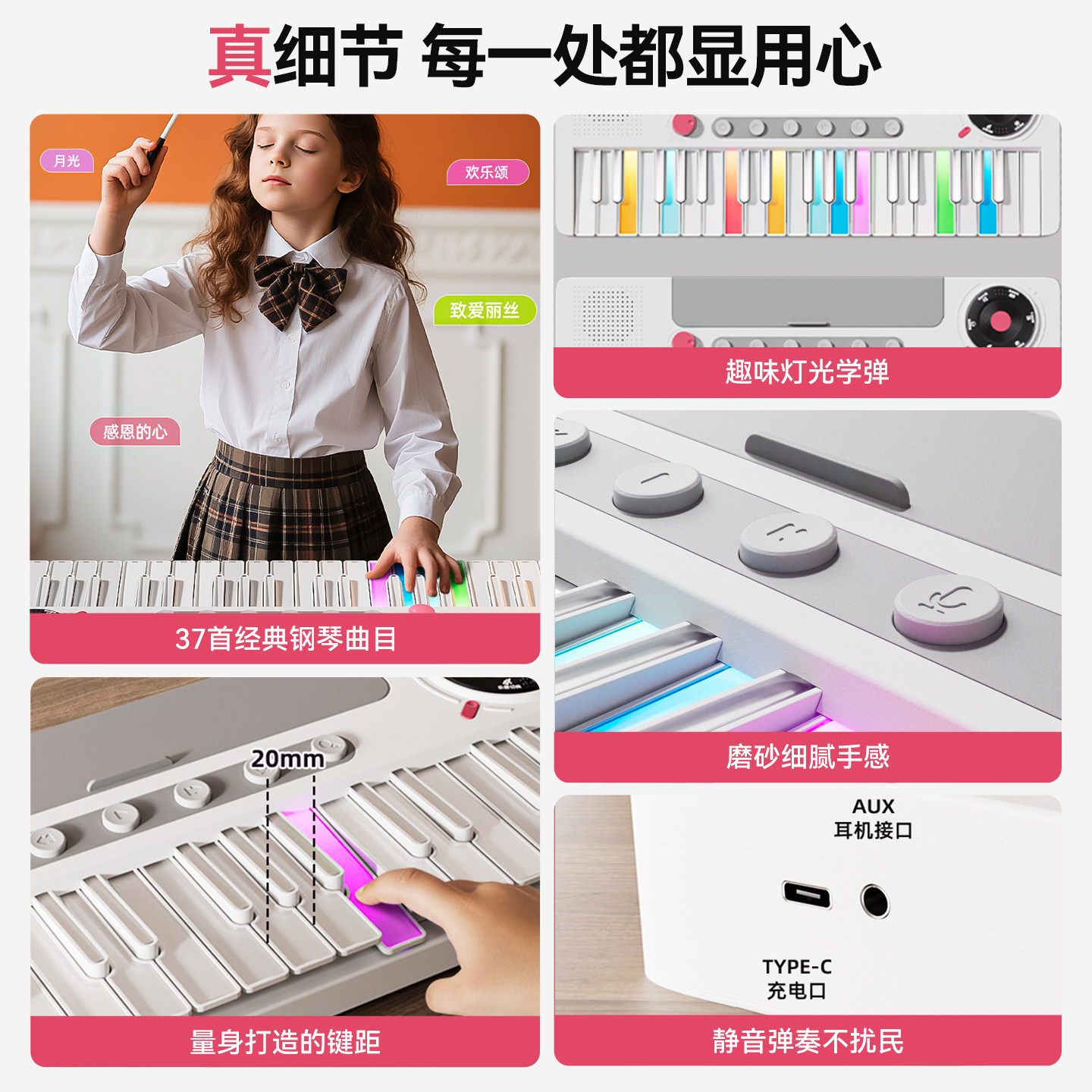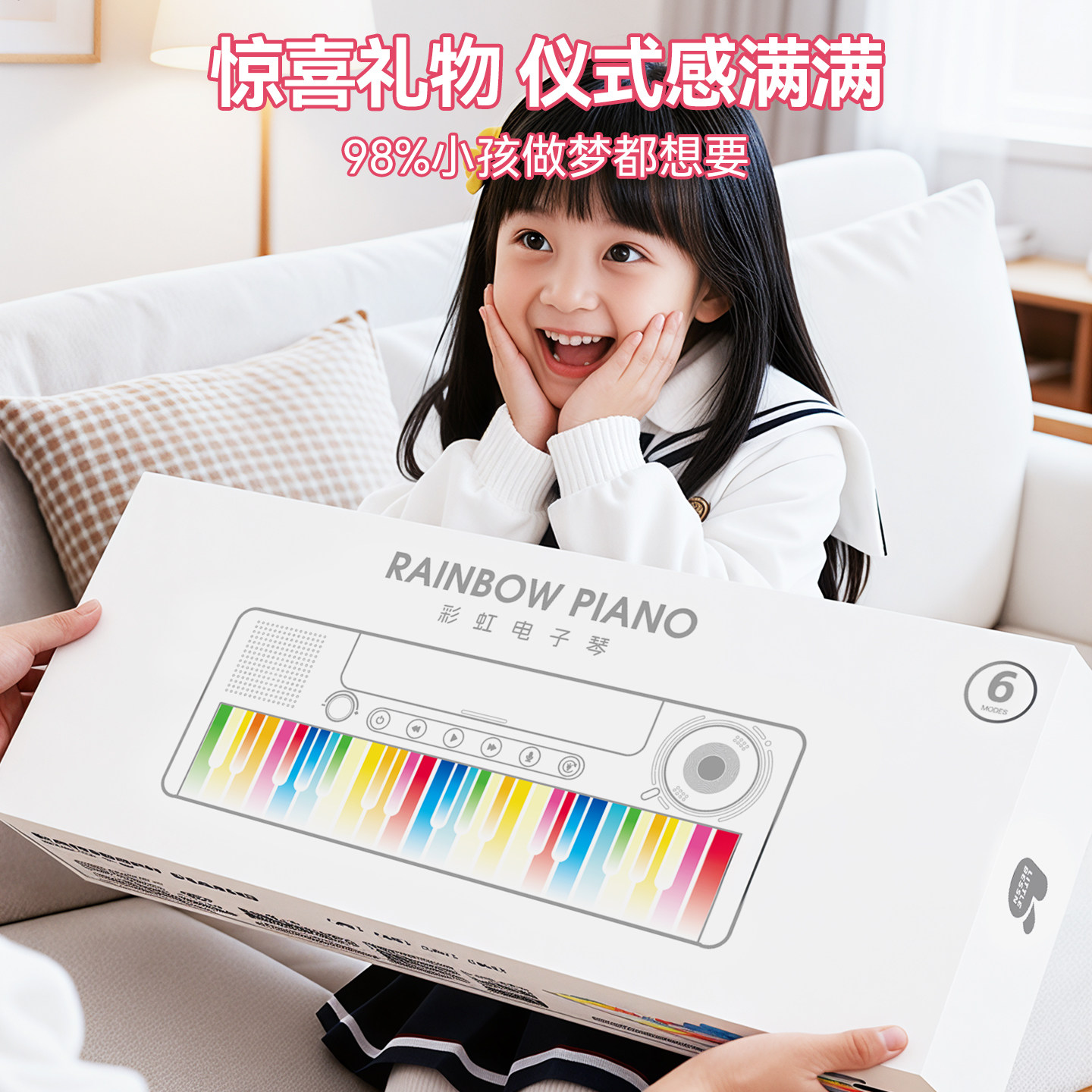 儿童电子琴女孩彩虹电子钢琴玩具初学乐器入门可弹奏新年礼物生日