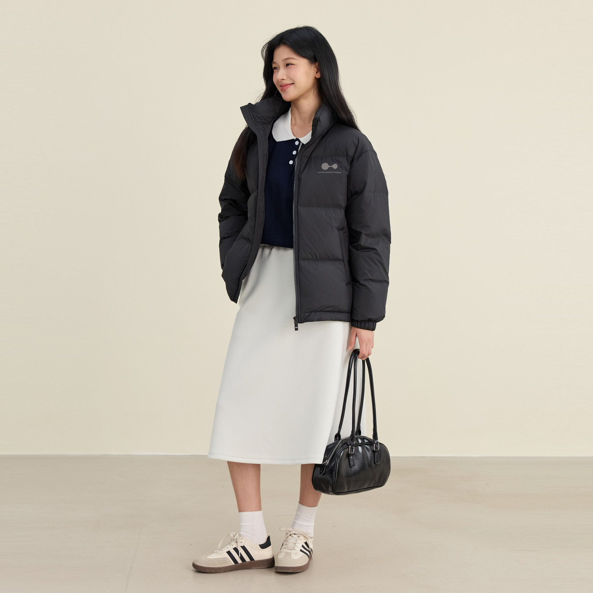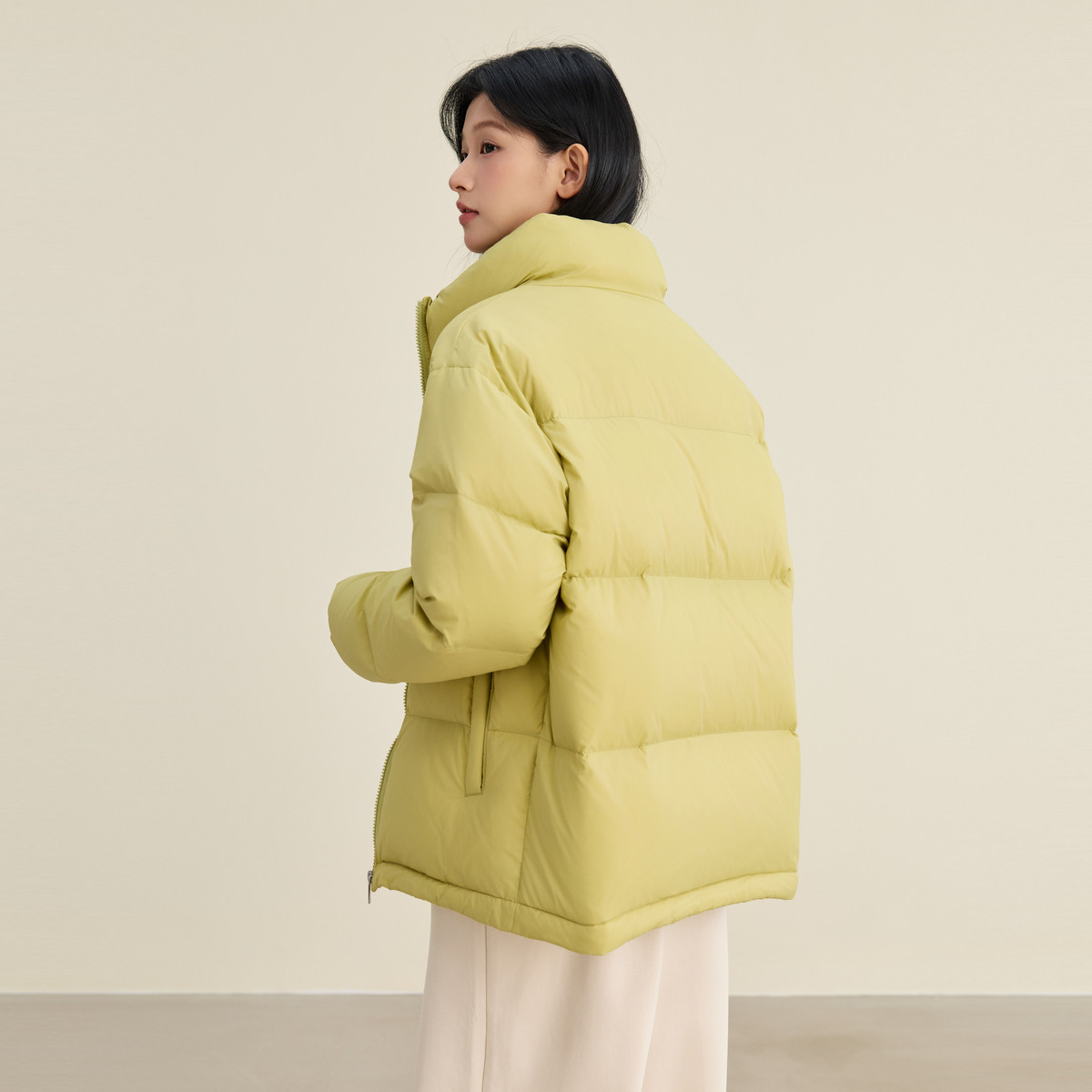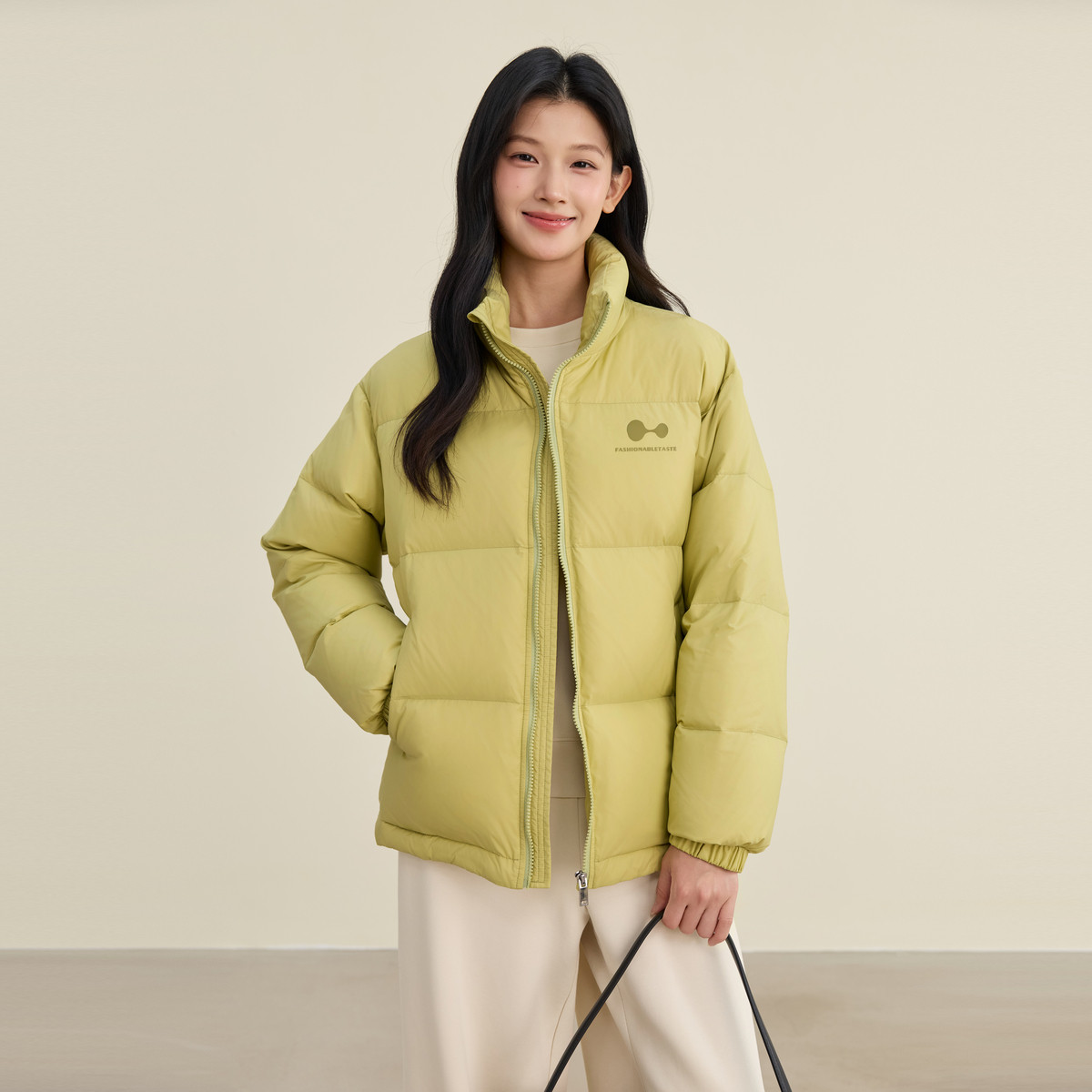 【鞠婧祎同款】鸭鸭2025年冬新款百搭短款女士纯色立领羽绒服外套