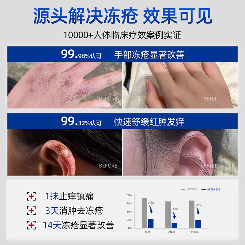 医用冻疮膏止痒冻伤膏耳朵消肿儿童防冻防裂正品特效修复护手足霜