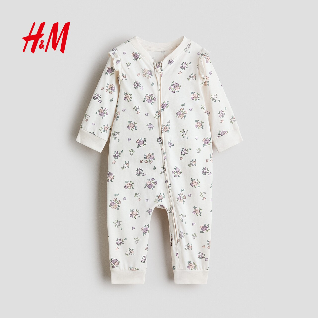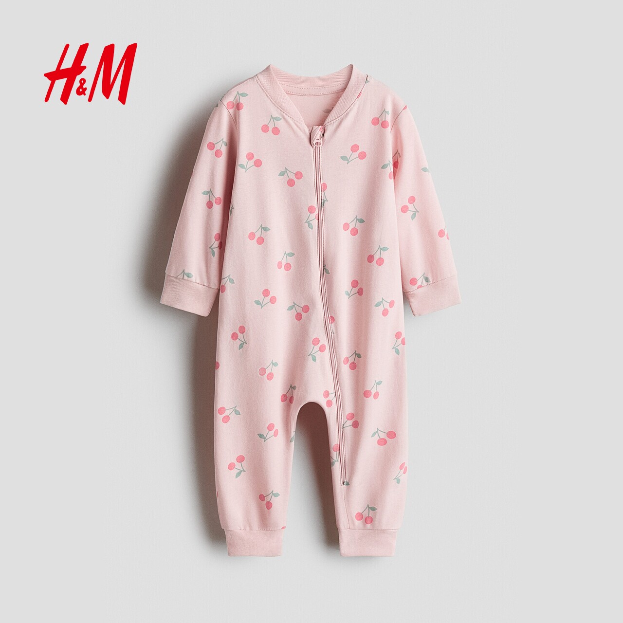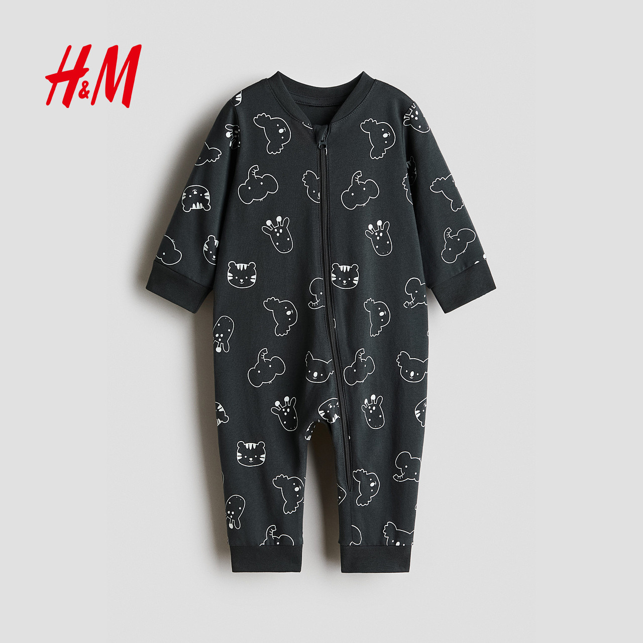 HM童装女婴儿童家居服春季圆领长袖长裤印花连体家居睡衣1238371