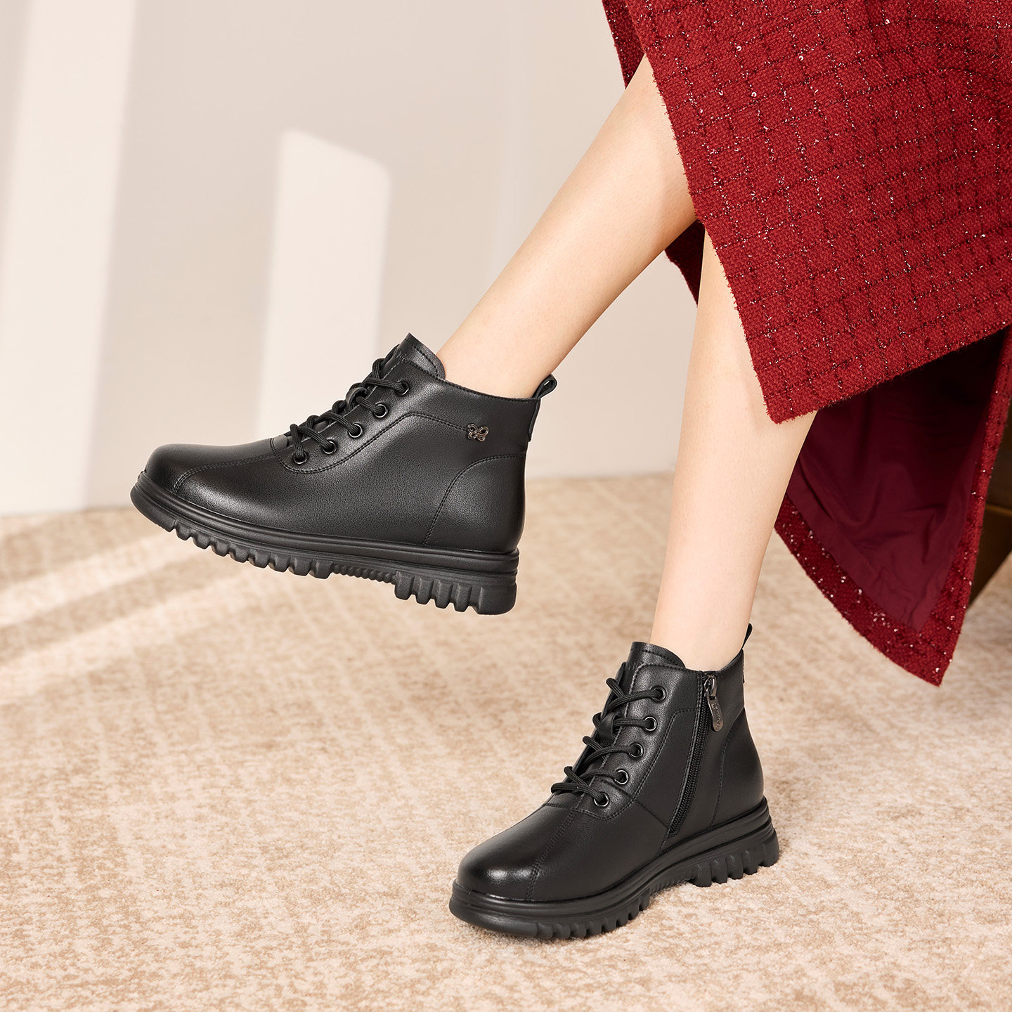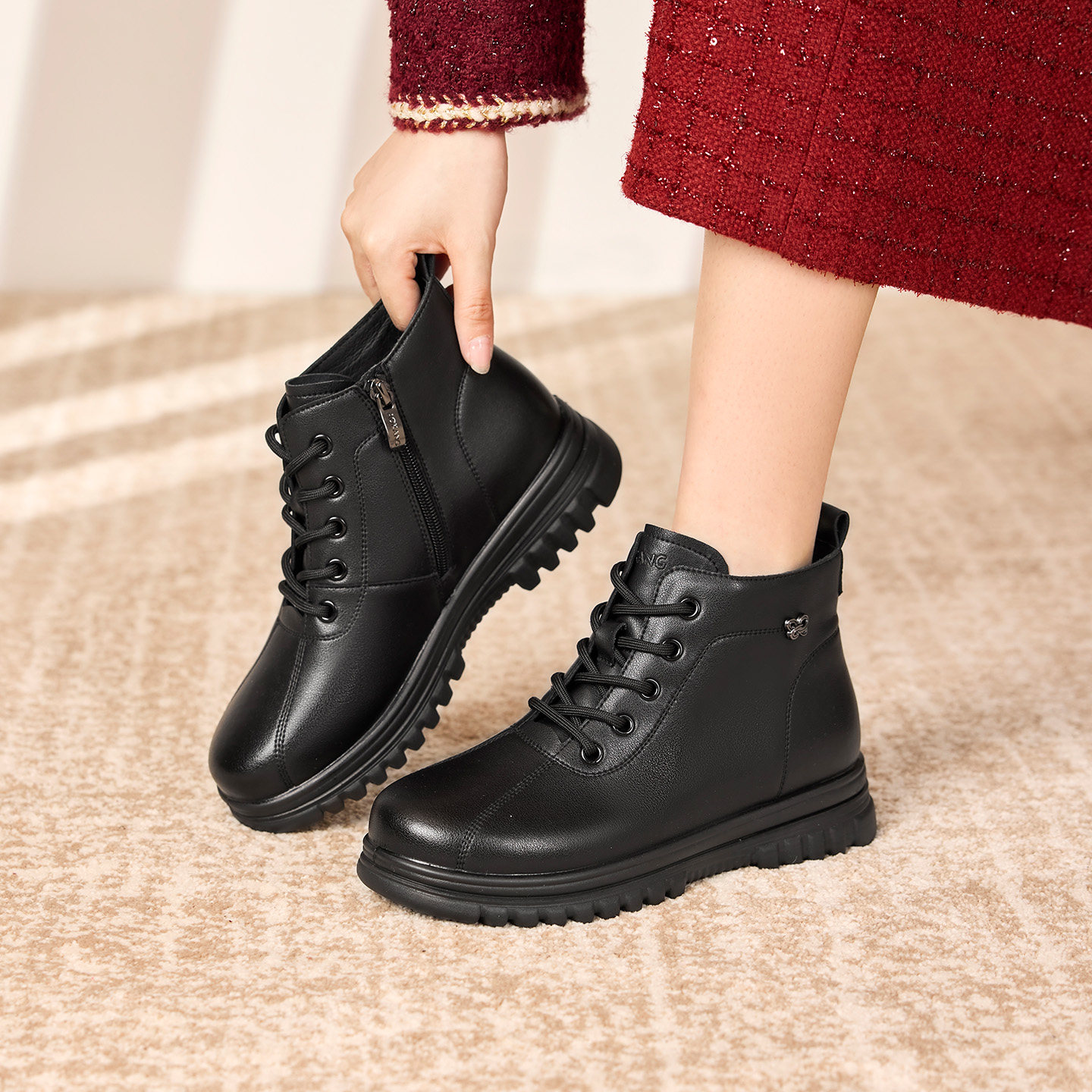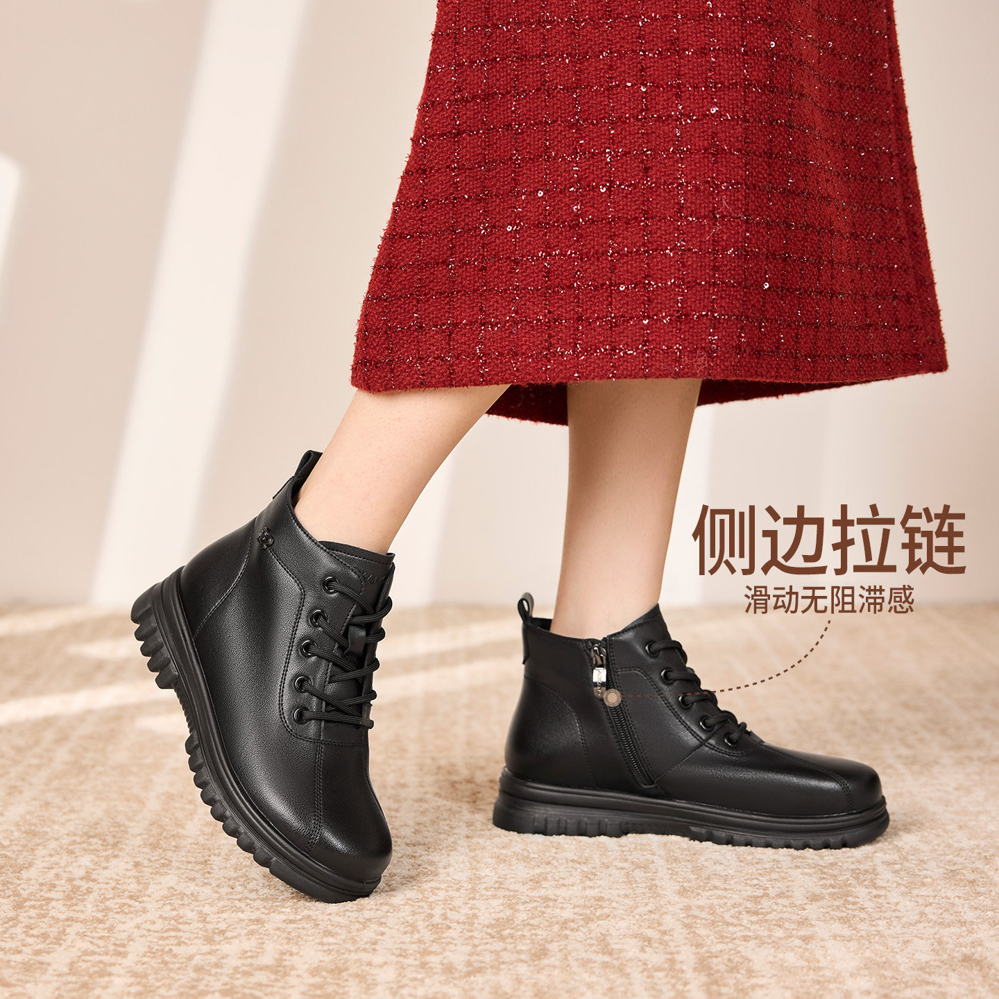 奥康 女鞋2025冬季新款妈妈棉鞋厚底加绒女款中老年短靴门店发货