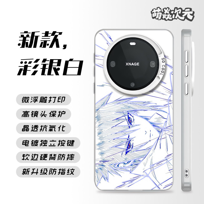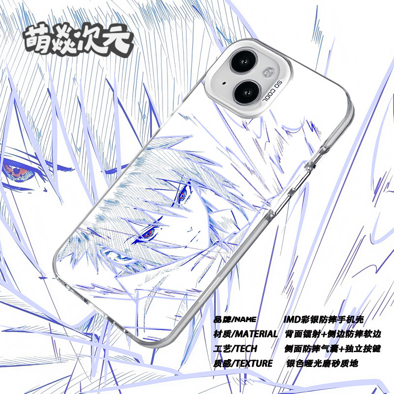 线稿线条反光二次元适用小众苹果华为荣耀VIVO小米OPPO魅族一加火影佐助动漫高级感彩银轻磨砂全包防摔手机壳