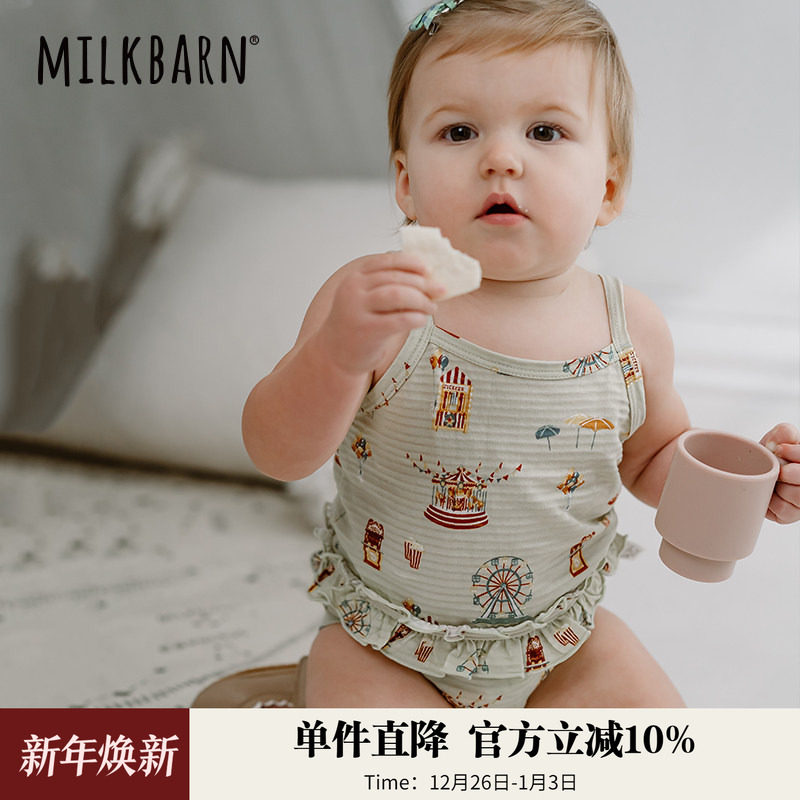 Milkbarn婴儿吊带包屁衣女宝宝夏季哈衣新生儿纯棉爬爬服