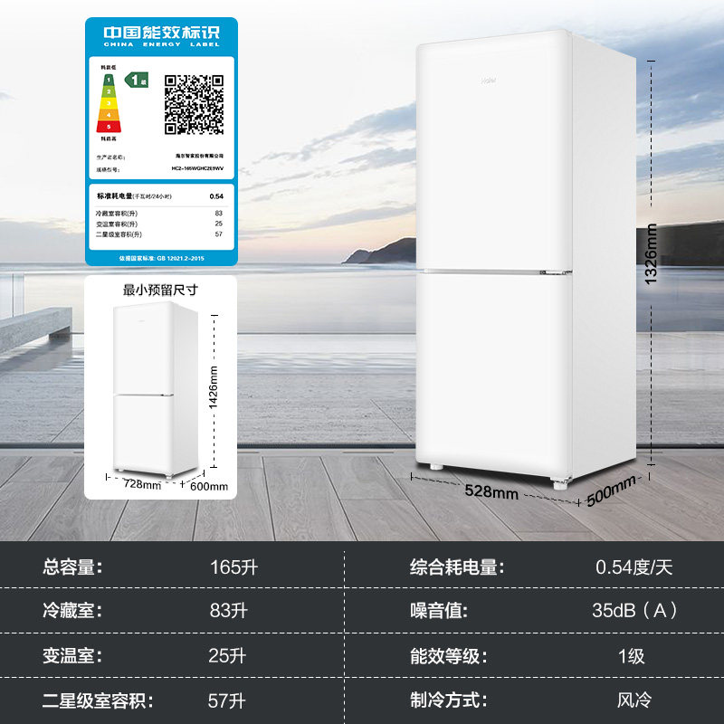 海尔小奶芙165L风冷无霜一级能效节能低噪小型超薄两门家用小冰箱