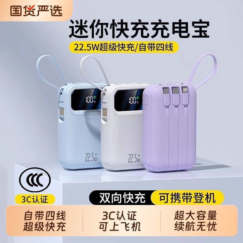 【国家3C认证】2025新款充电宝超大容量20000毫安1万超薄小巧便携迷你自带线快充适用苹果专用官方正品旗舰店