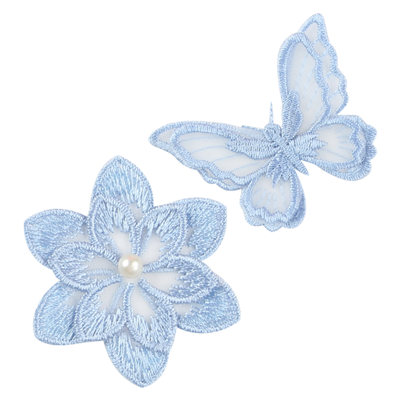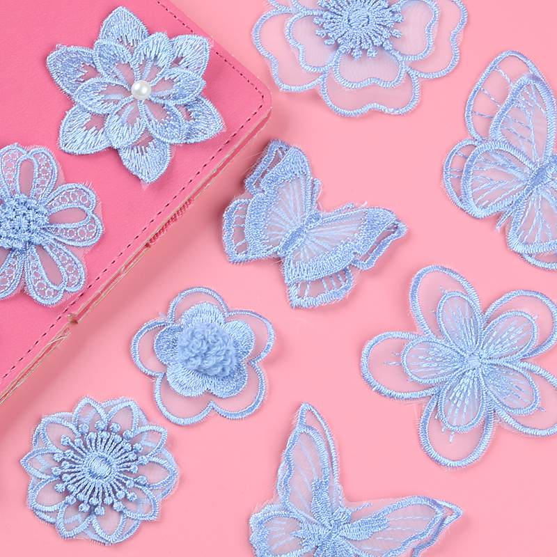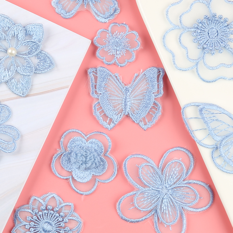 蓝色蕾丝布贴衣服装饰贴花蚊帐窗帘破洞无痕修补贴刺绣补丁贴手缝