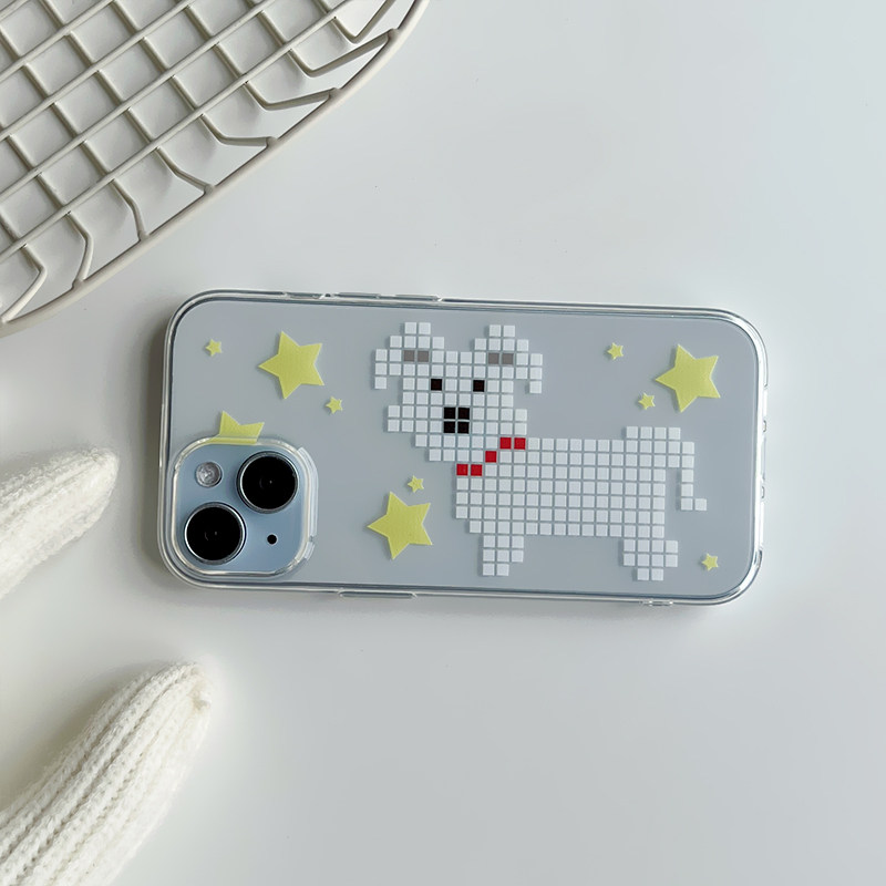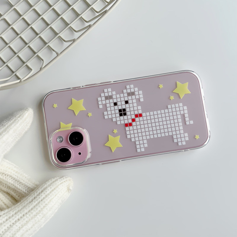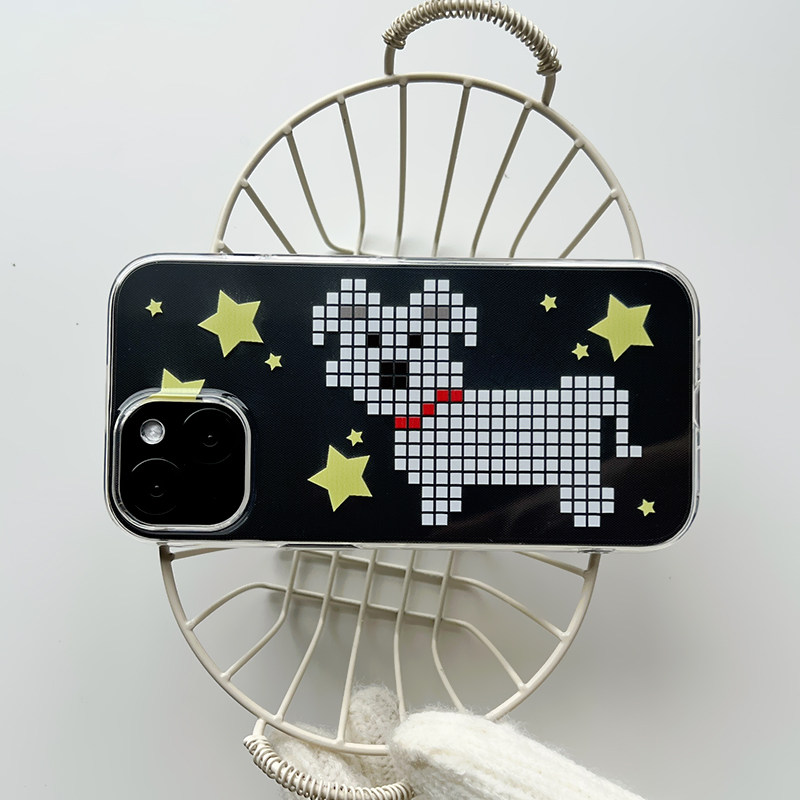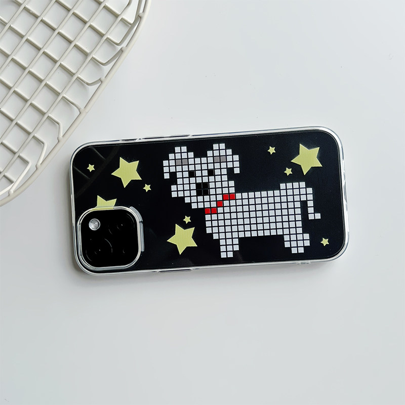 日韩ins风可爱马赛克小狗适用iPhone15promax苹果12/14RPO/13mini简约手机壳全包男女
