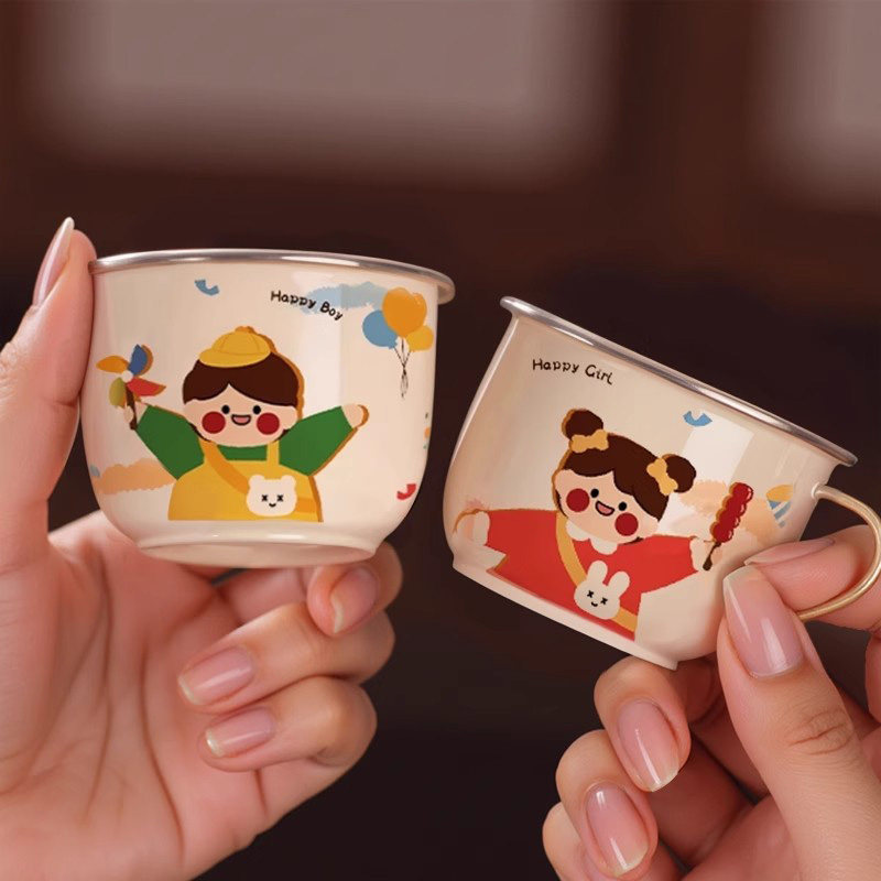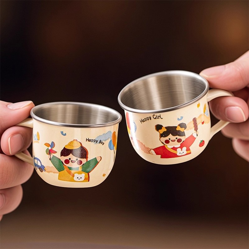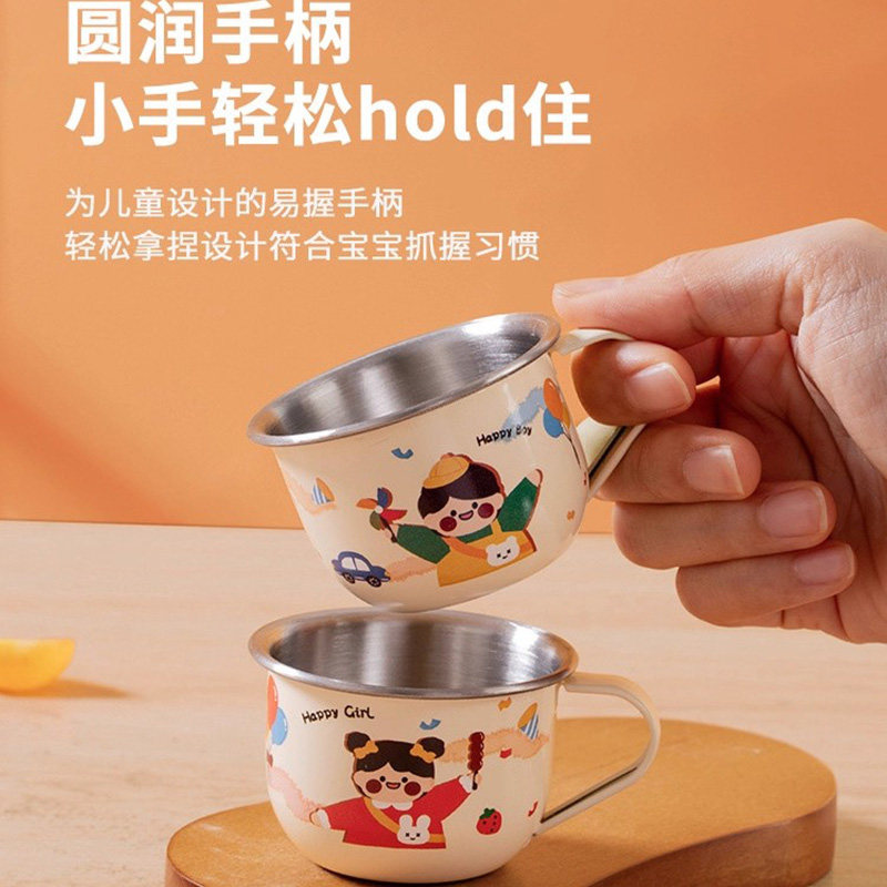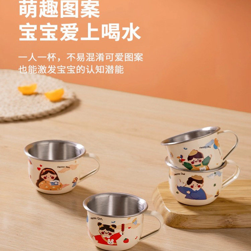 食品级316不锈钢儿童水杯家用喝水小杯子宝宝敞口杯幼儿园牛奶杯