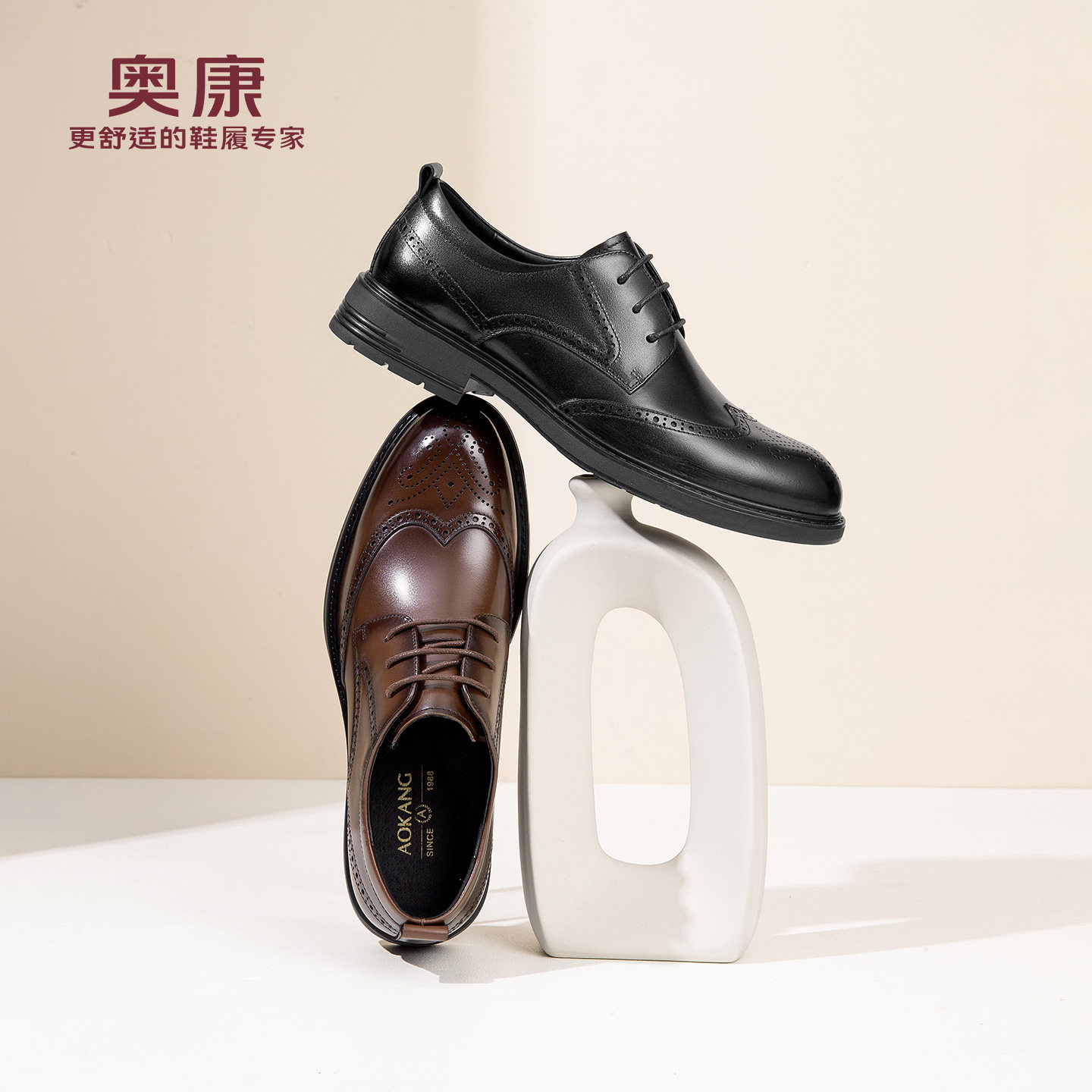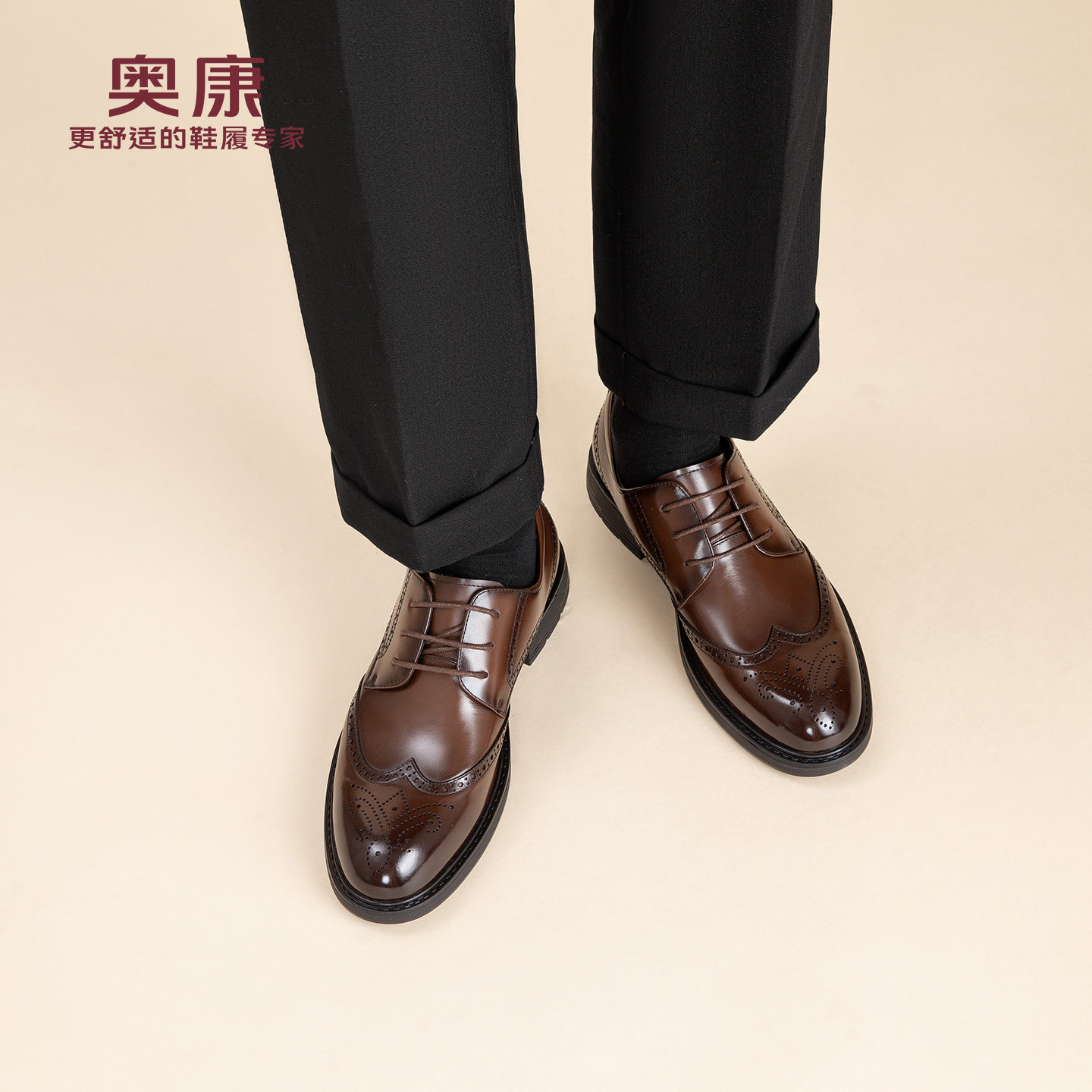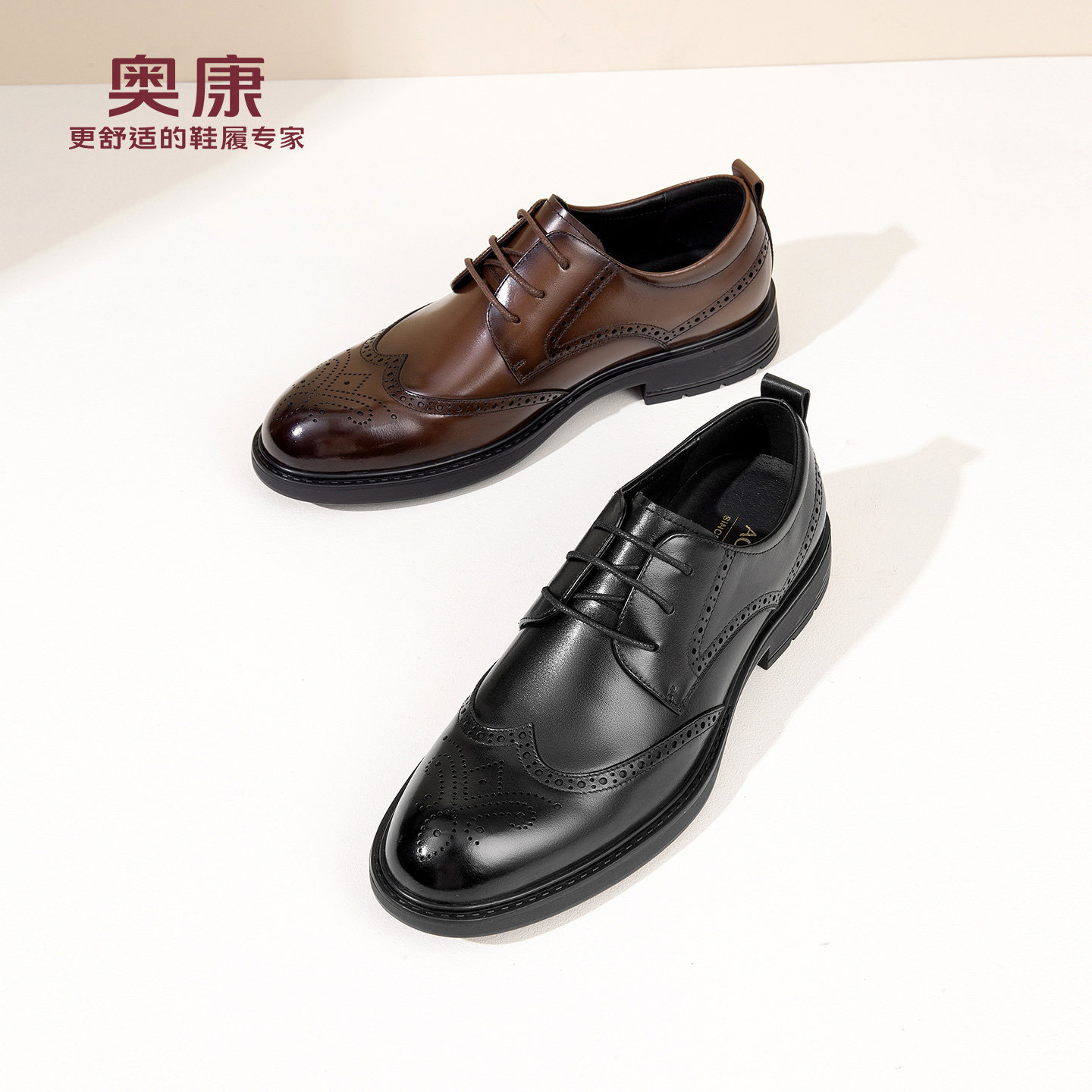 奥康 男鞋布洛克皮鞋男士春季新款真皮商务正装雕花新郎婚鞋N