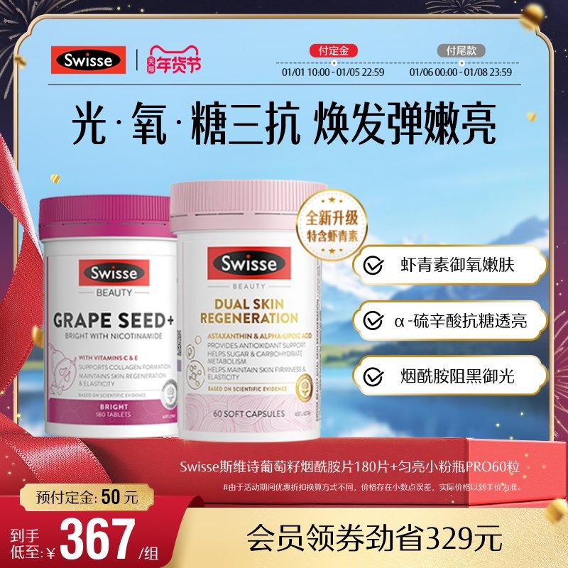 葡萄籽Swisse抗糖丸胶原蛋白烟酰胺花青维生素vc冷白皮肤亮斯维诗