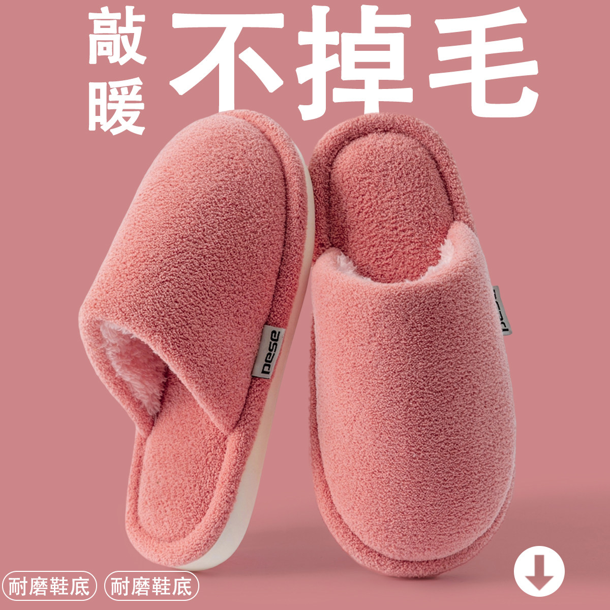 朴西棉拖鞋女士秋冬季厚底简约保暖室内居家用软底防滑情侣棉拖男