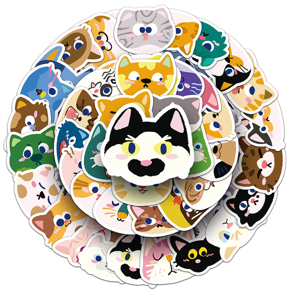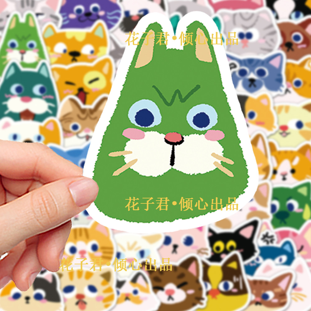 100张猫咪头像贴纸卡通彩绘涂鸦猫猫大头贴笔记本行李箱水杯装饰