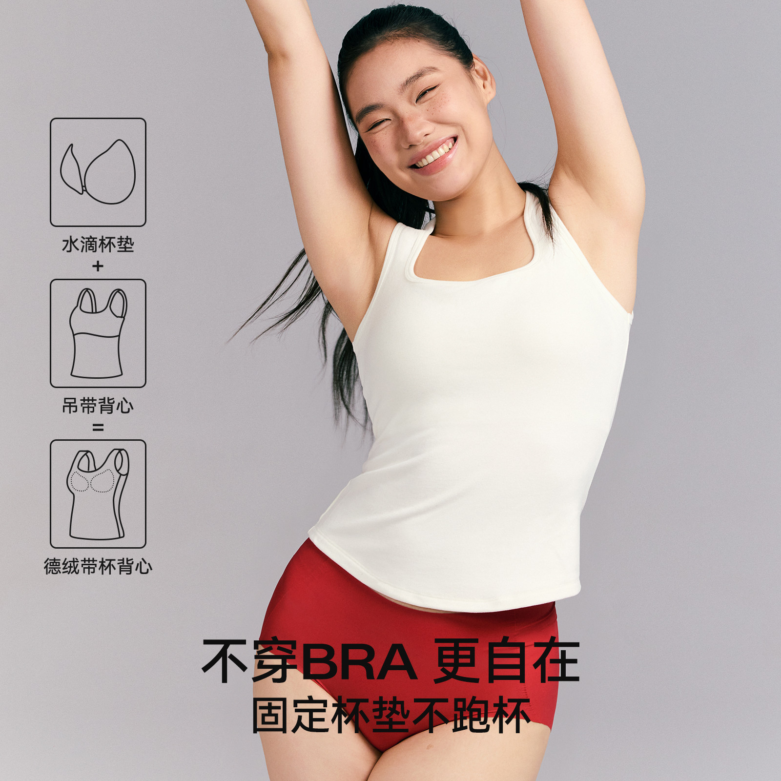 半练方领宽肩保暖背心女秋冬新款带胸垫吊带吸湿发热内搭显瘦打底