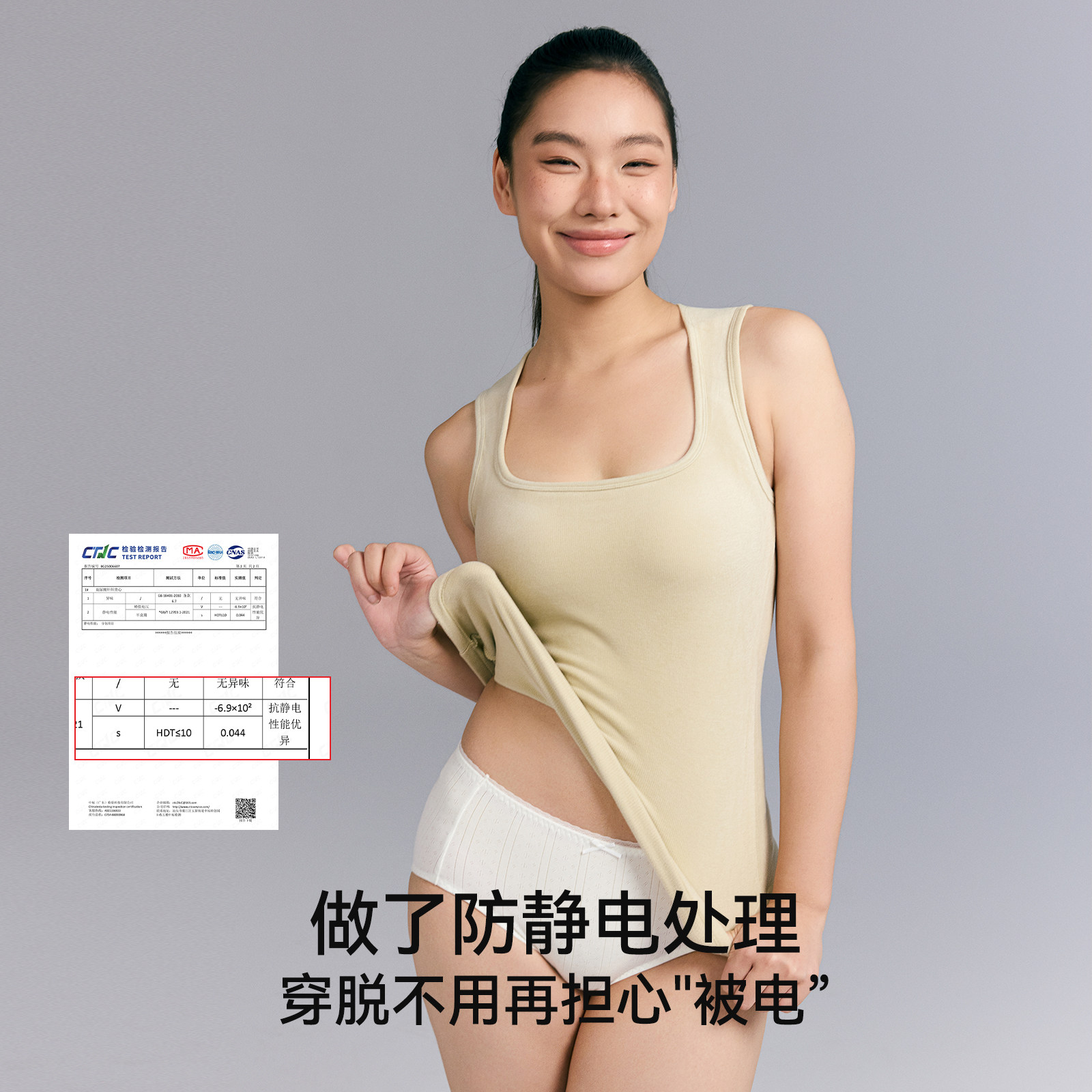 ubras保暖背心U领肌底衣女舒适无痕无袖内搭打底含羊毛可外穿上衣