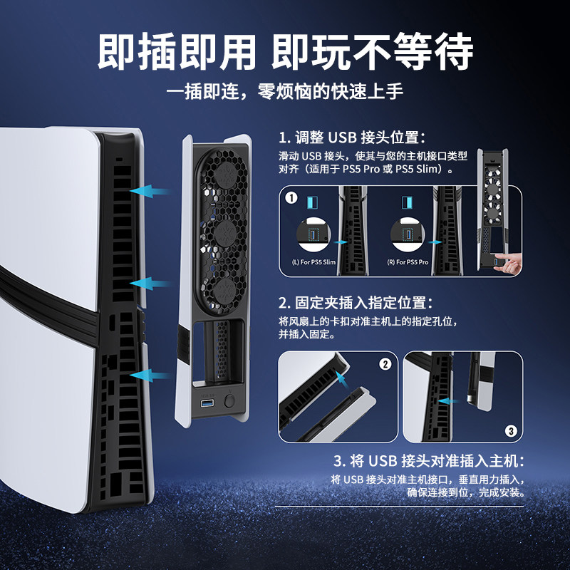 鑫喆适用索尼PS5散热风扇Slim主机散热器Pro游戏机后置降温神器光驱数字港版Sony智能温控改装维修周边配件