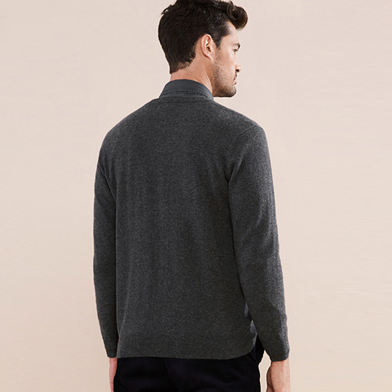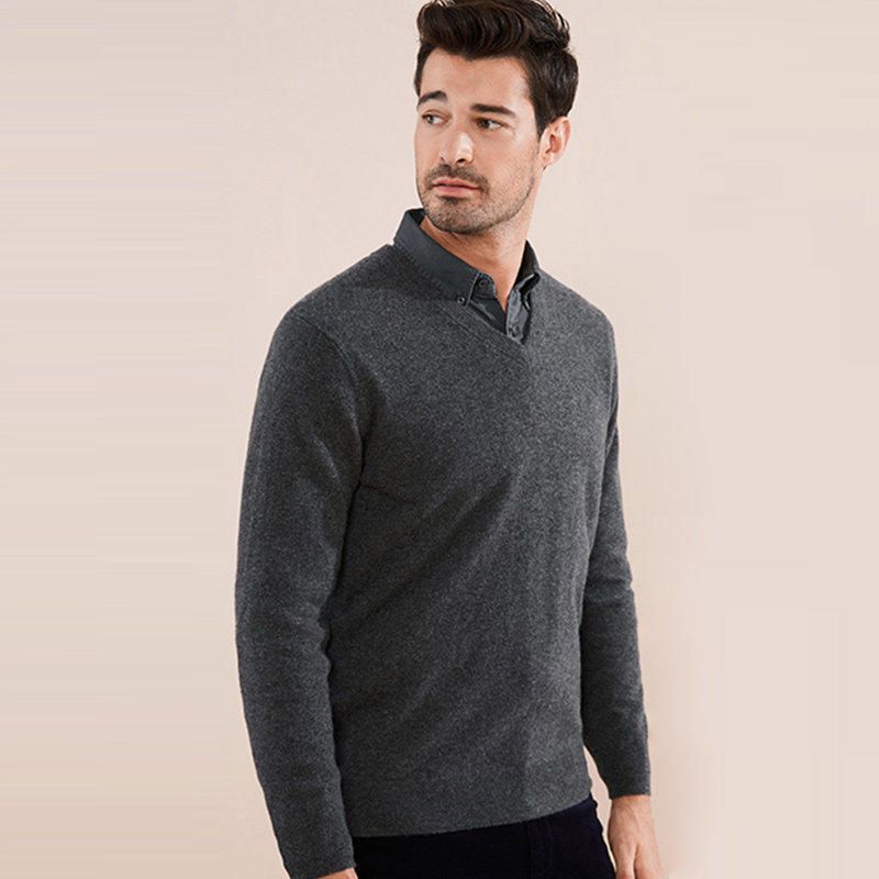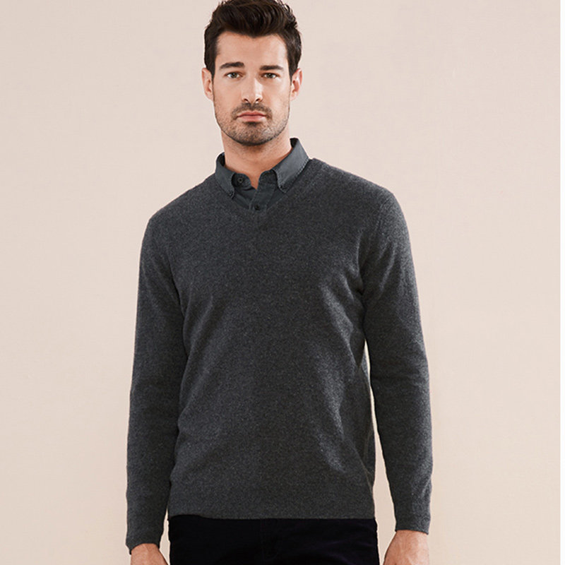 恒源祥V领羊绒衫男装秋冬针织长袖纯山羊绒套头毛衣打底针织毛衫