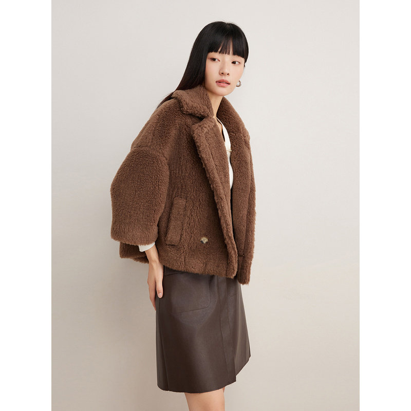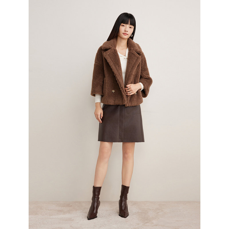【美拉德】Goodland美地女装冬季时尚短款保暖环保羊毛皮草外套