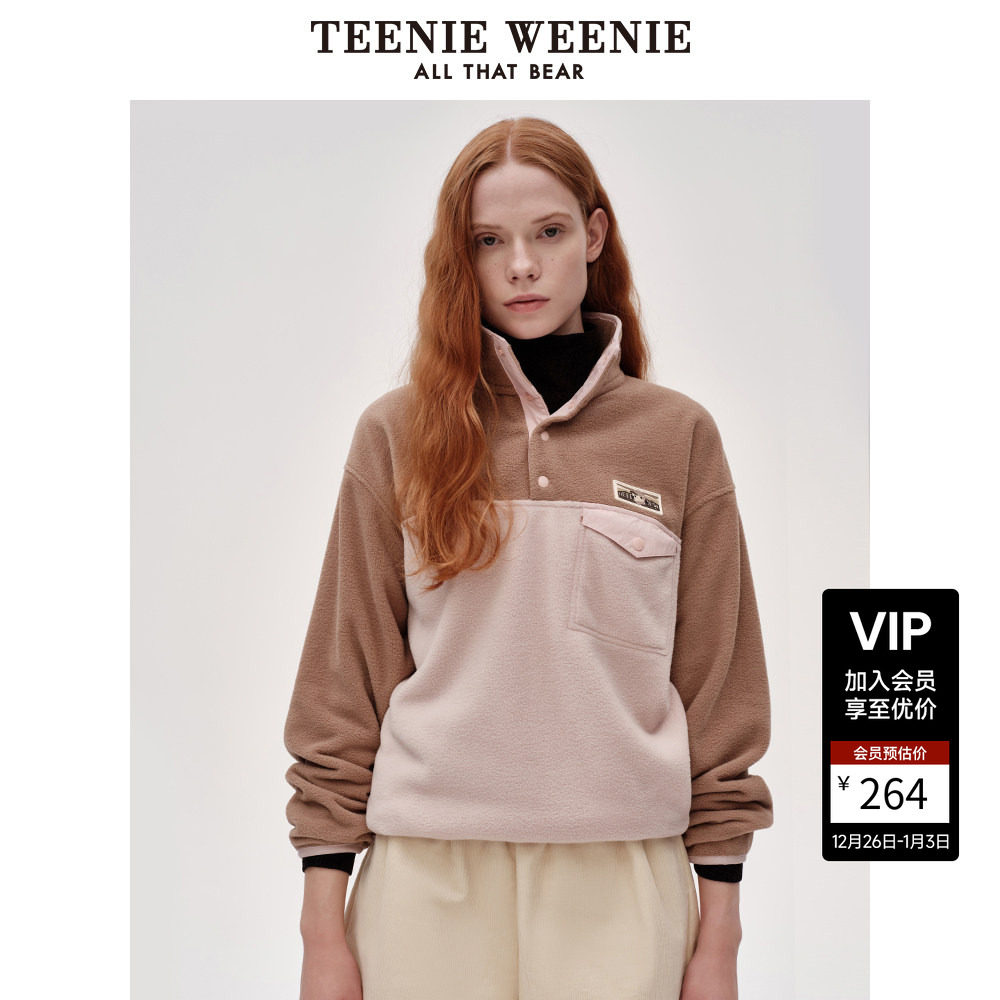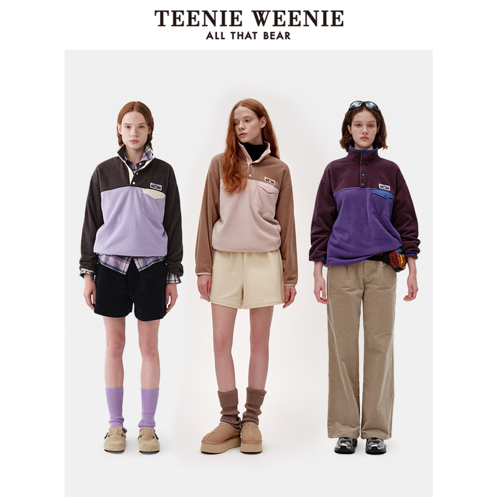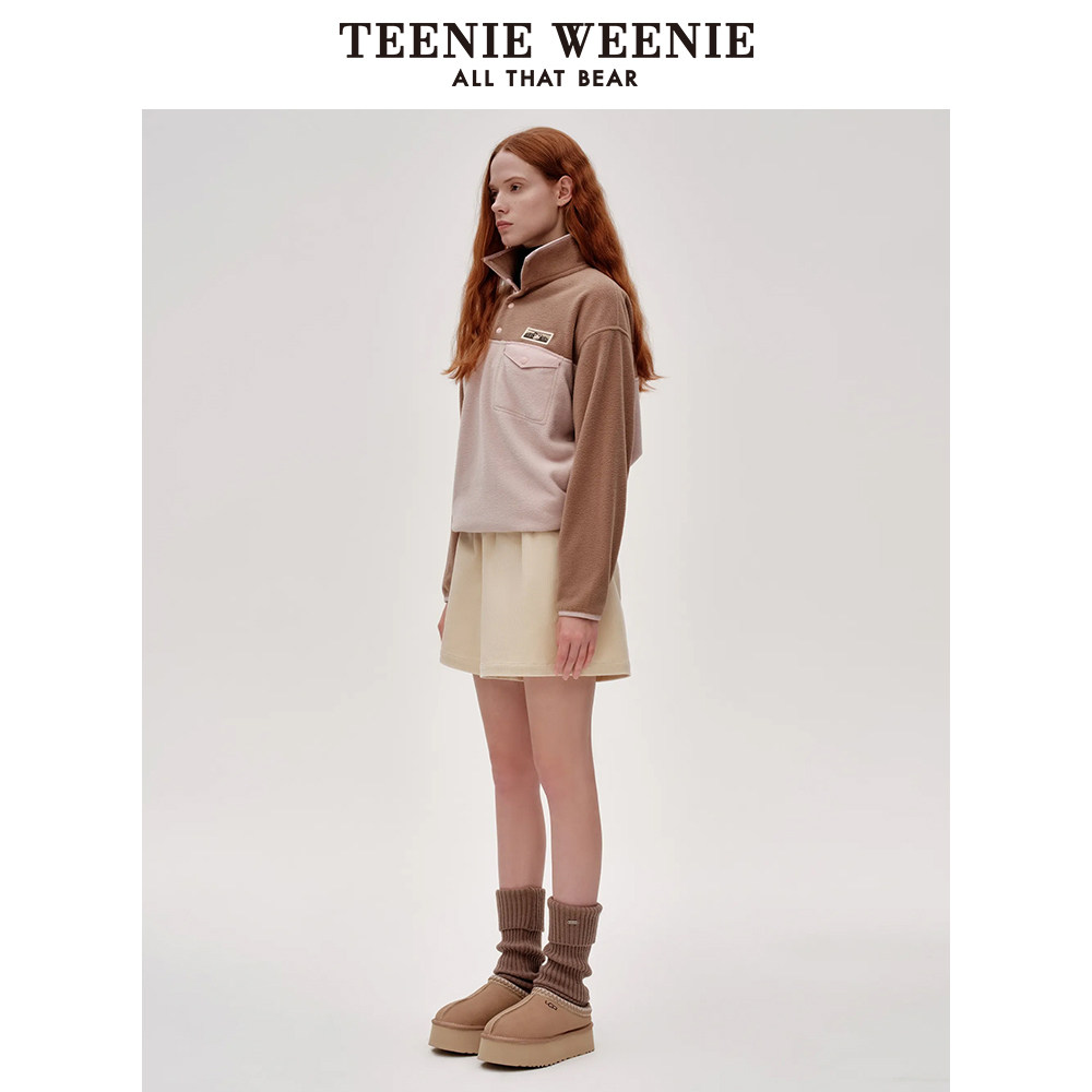 TeenieWeenie小熊奥莱冬装撞色双面摇粒绒卫衣柔软短款外套