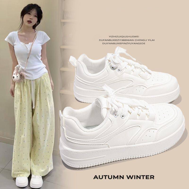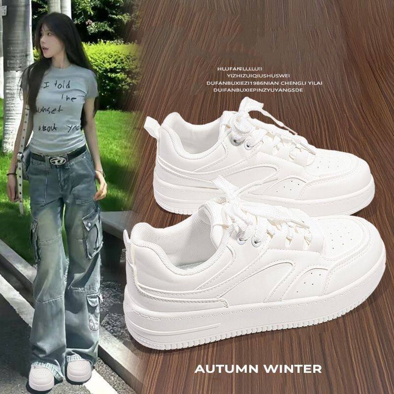 易少年 厚底德训板鞋女ins潮2025冬季新款港风小众百搭休闲小白鞋
