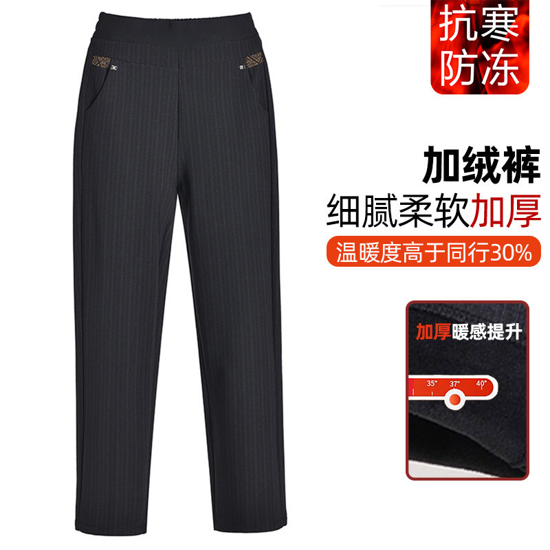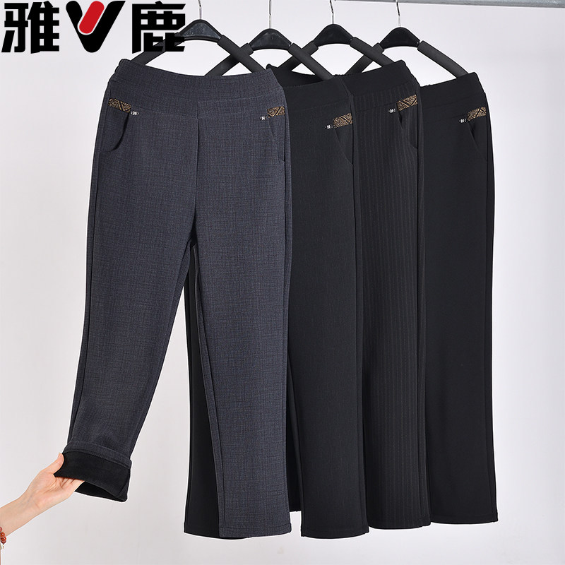 雅鹿妈妈秋冬款加绒加厚高腰直筒中老年人外穿保暖春秋女老奶奶装