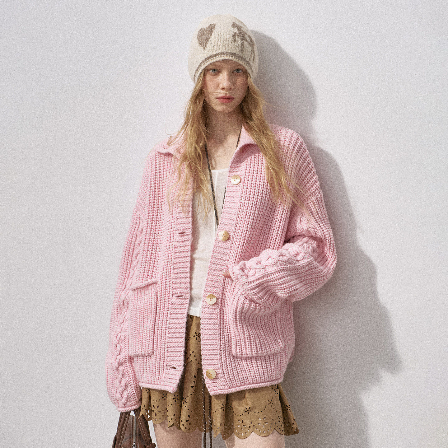 NVPVVA 秋冬新款学院风慵懒翻领绞花毛衣麻花宽松套头LOGO针织衫