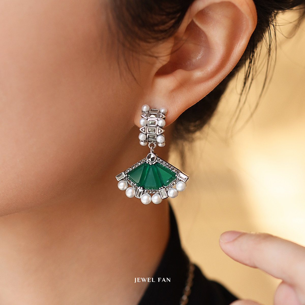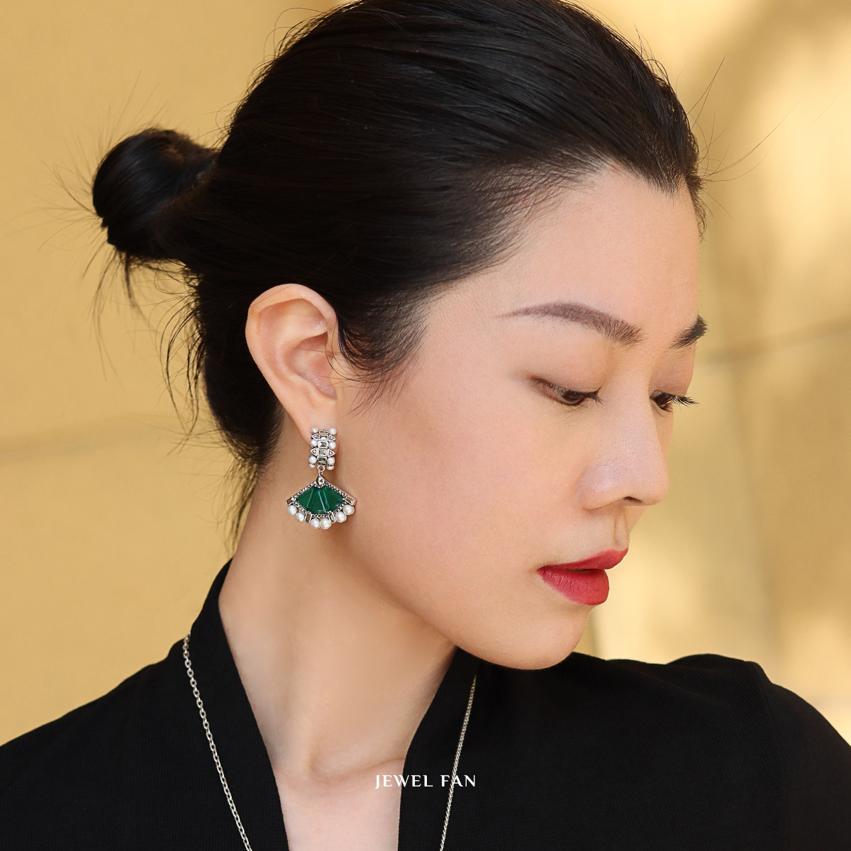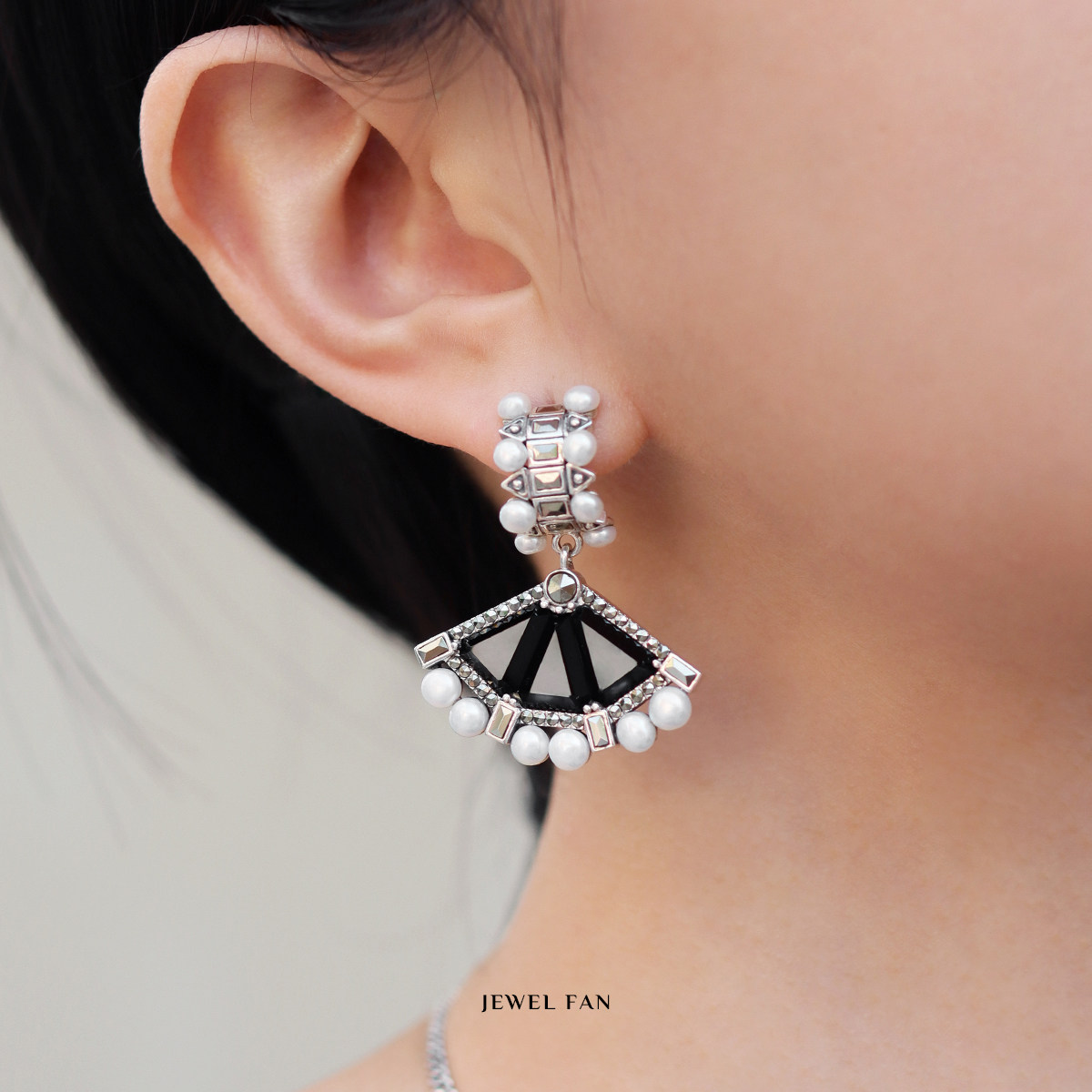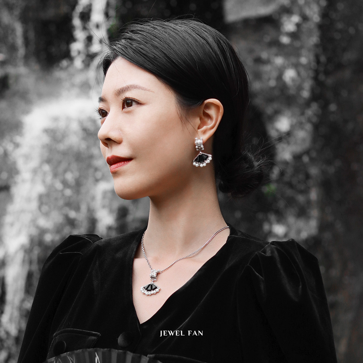 MGS/曼古银珠光宝扇系列耳环秋冬复古高级感黑玛瑙S925银耳饰耳坠