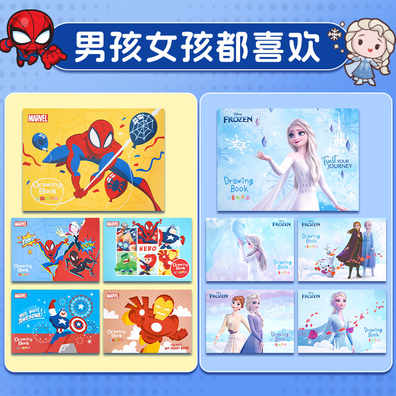 迪士尼艾莎公主图画本儿童绘画本幼儿园小学生专用画画本一二年级女孩美术本疯狂动物城空白画册本冰雪素描本