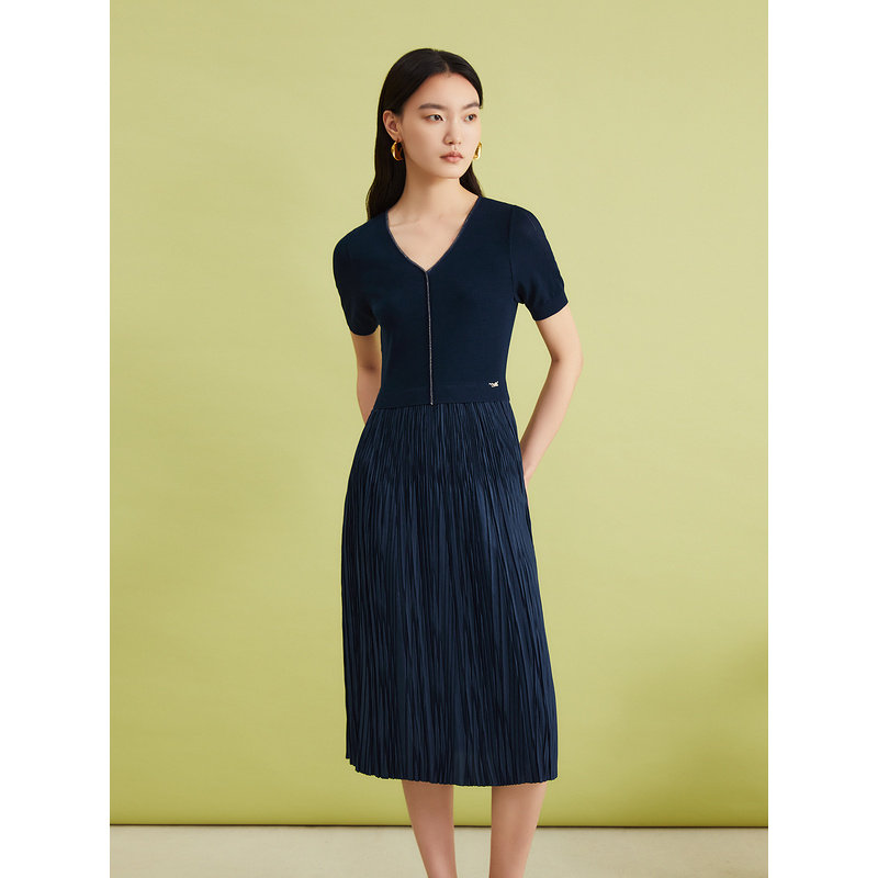 【宝莱纱】YINER音儿专选夏季法式压褶针织优雅连衣裙