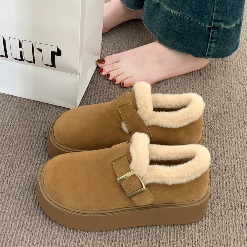 厚底加绒豆豆勃肯鞋女2025新款秋冬季外穿毛毛鞋子保暖棉鞋雪地靴