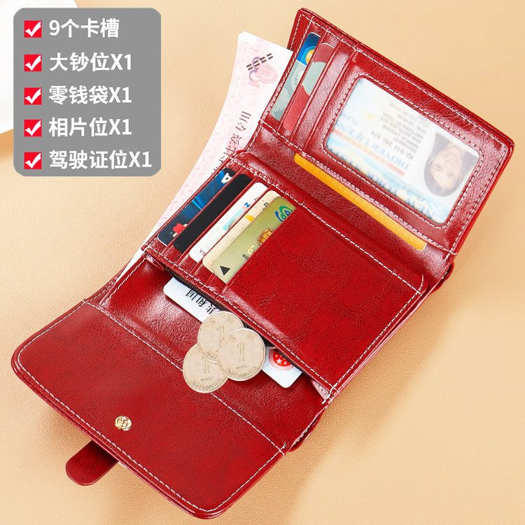 2025新款女士钱包短款真皮简约拉链复古牛皮卡包多功能驾驶证折叠