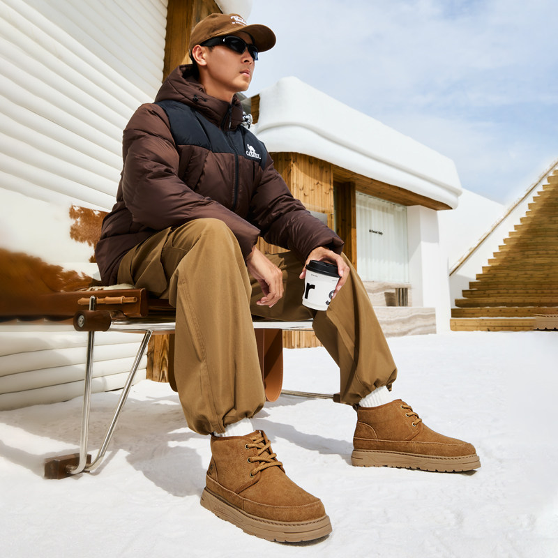 骆驼男鞋2025冬季新款保暖加绒棉鞋男士厚底休闲百搭户外雪地靴