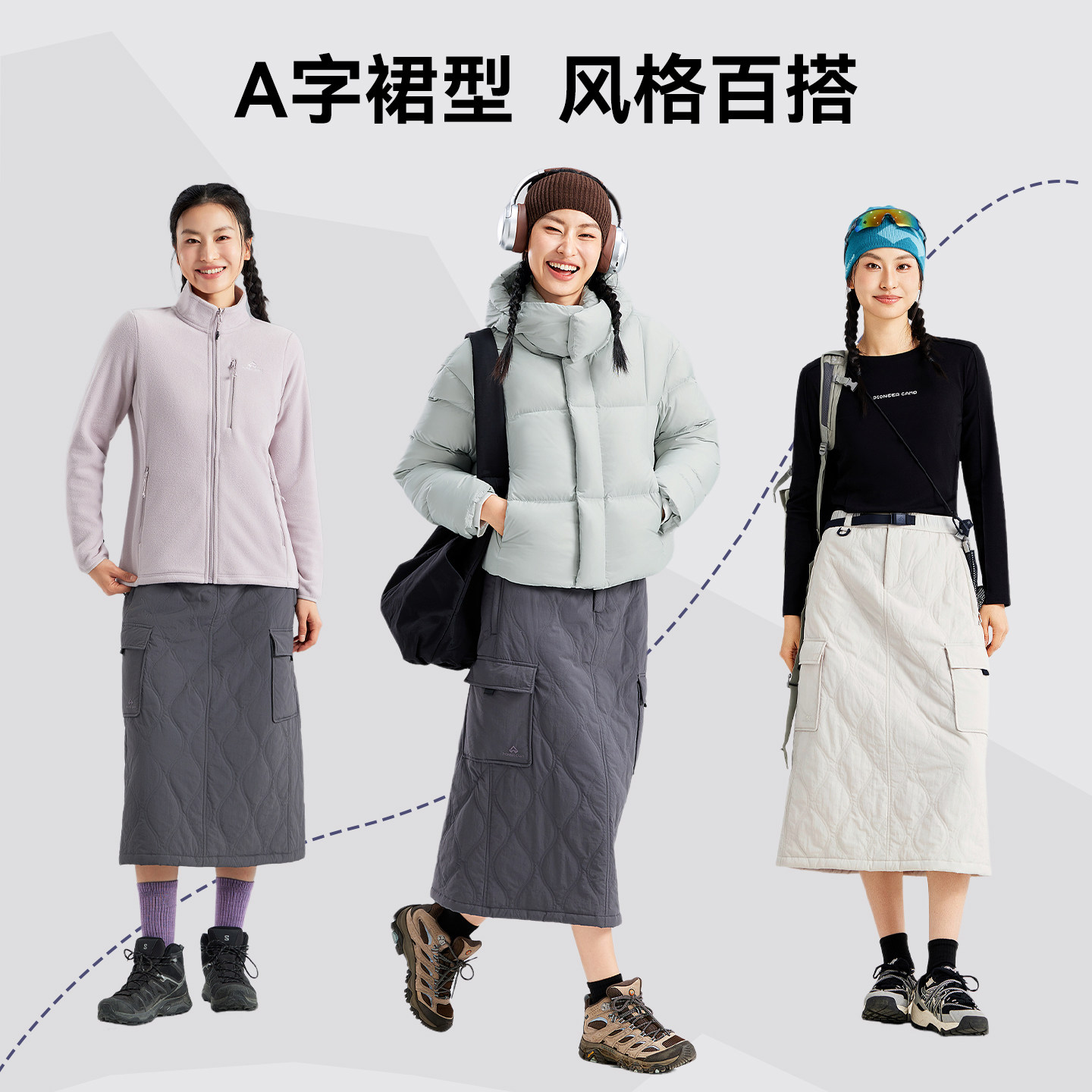 拓路者秋冬季新雪丽半身裙女中长款A字夹棉保暖户外防风工装棉裙