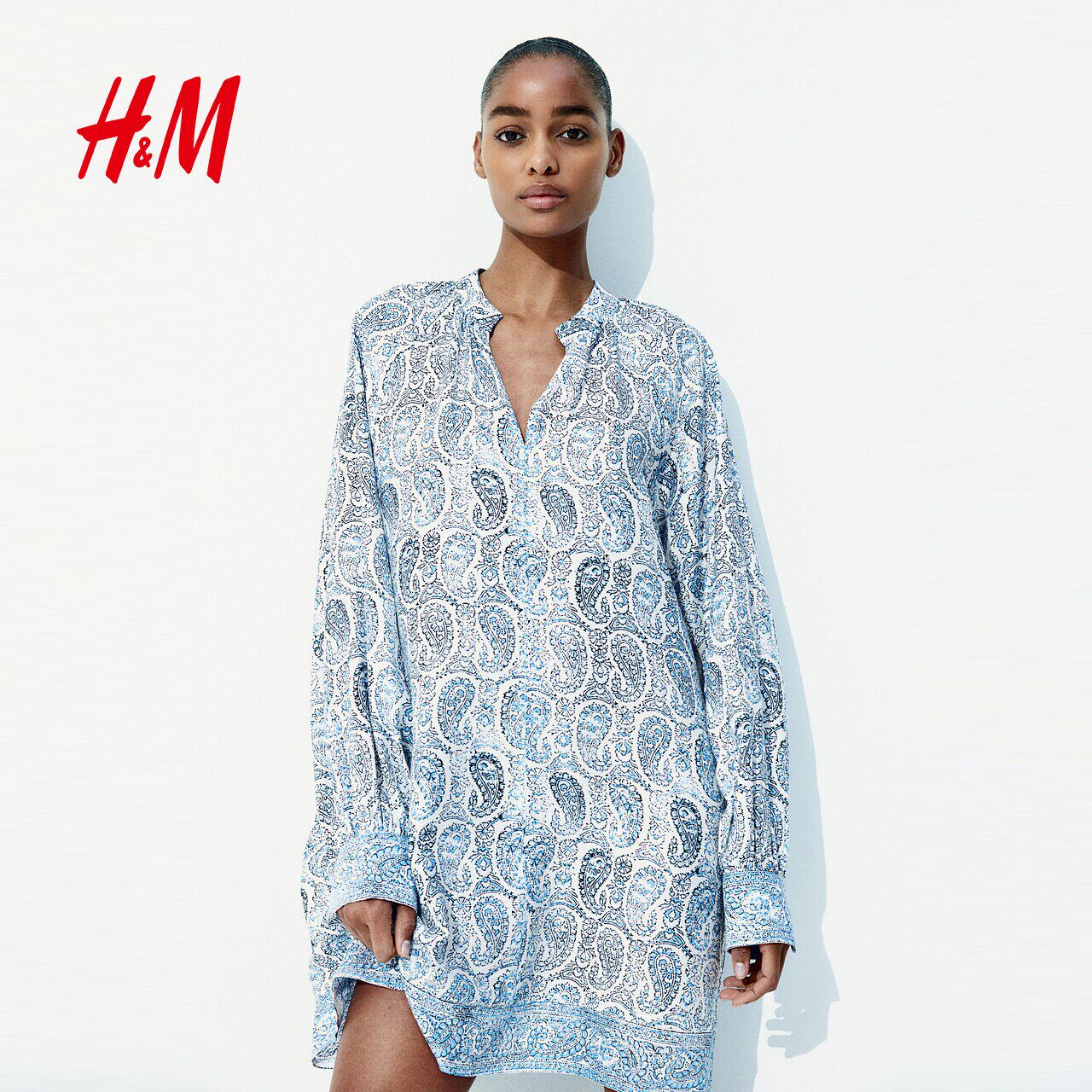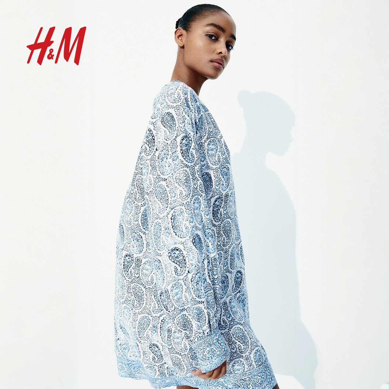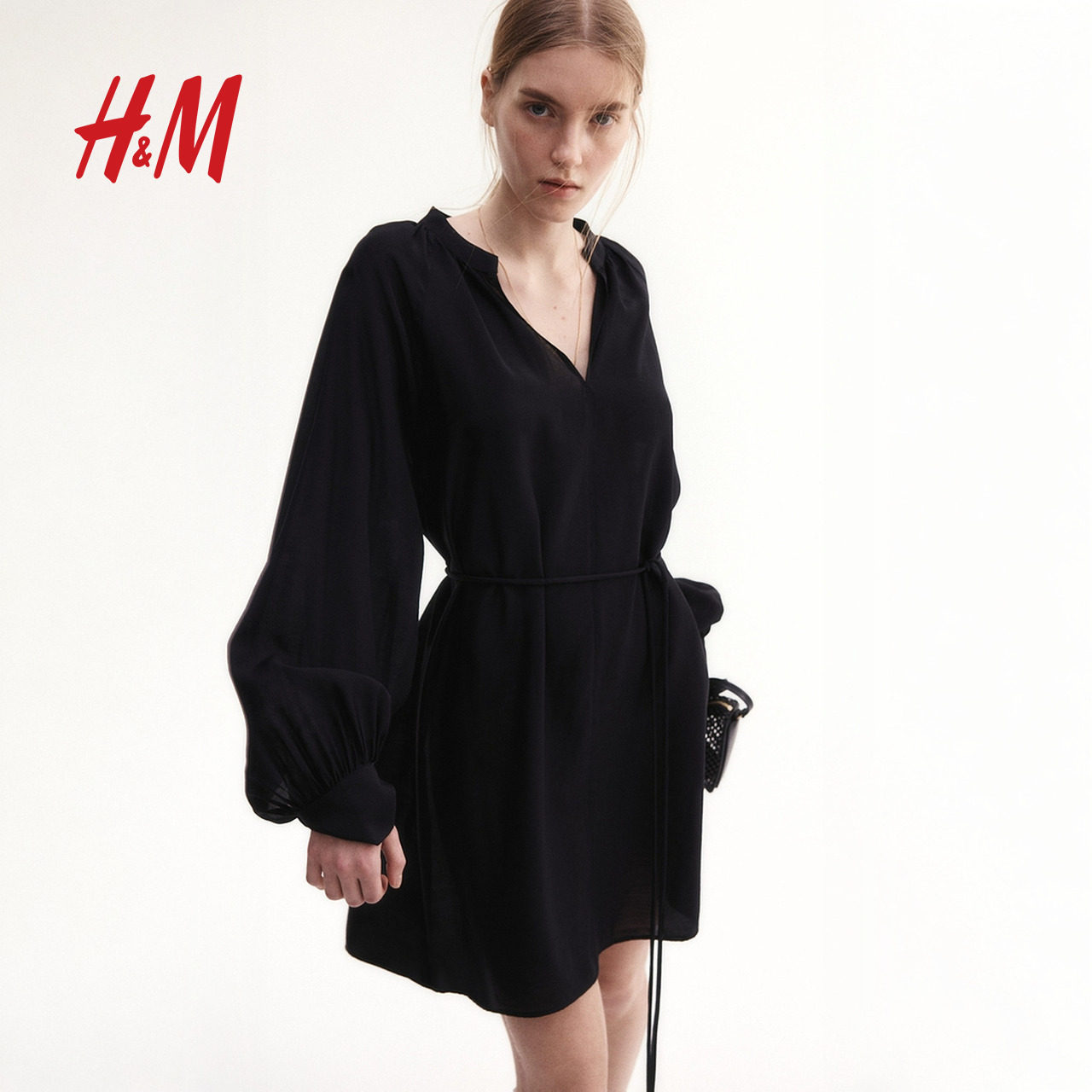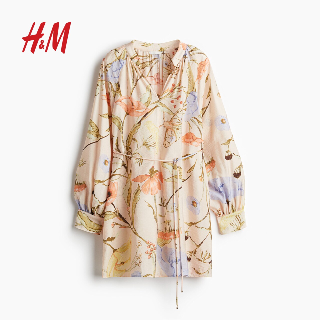 HM女装连衣裙25春季中式立领波嬉风系带灯笼设计感碎花裙1278033
