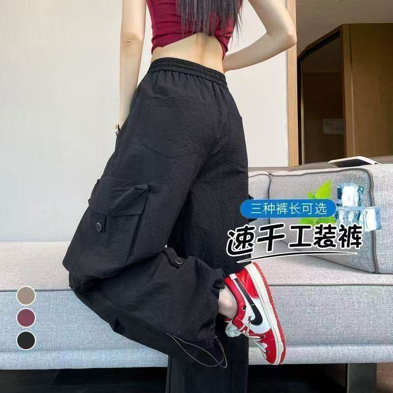 冰丝速干工装裤女夏薄款松紧高腰休闲宽松束脚登山运动阔腿裤大码