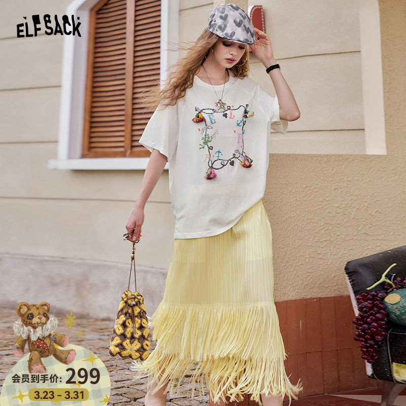 妖精的口袋立体挂坠t恤流苏长裙两件套女2026春夏新款高级感套装