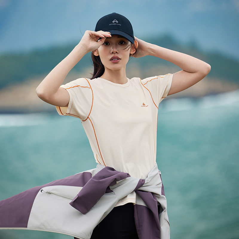 拓路者夏季新款户外速干t恤女圆领修身短款小个子短袖轻薄体恤衫
