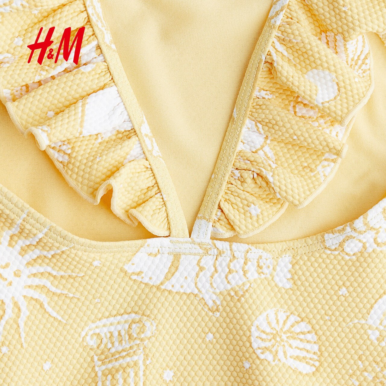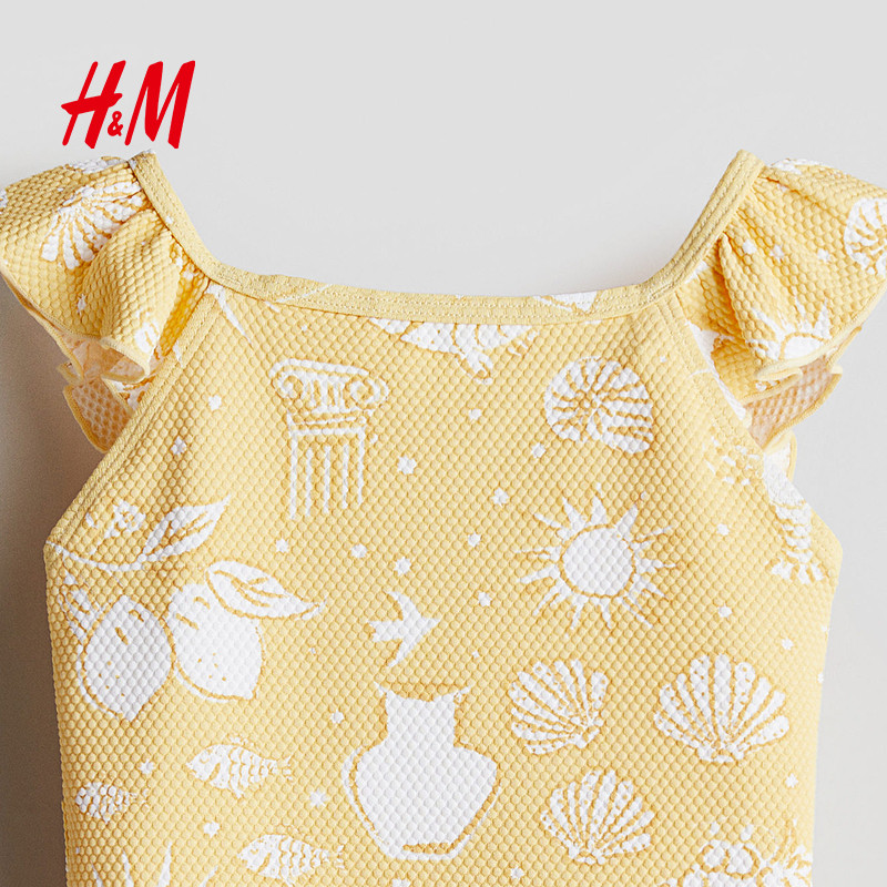 HM冬季童装儿童女童连体泳衣低露背纹理泳装1260287