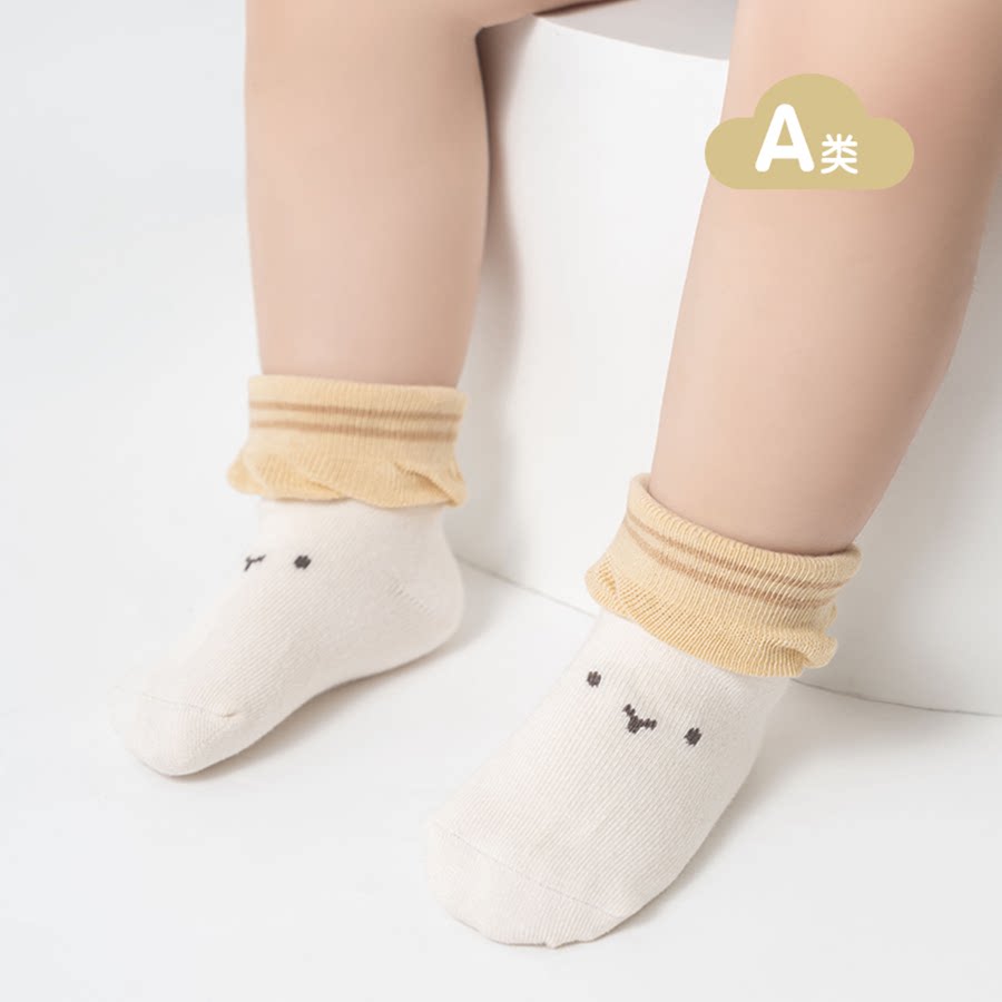 婧麒婴儿袜子春秋薄款新生儿宝宝柔软不勒中筒袜男女童居家无骨袜